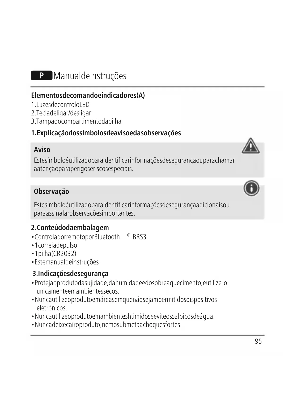 1. Explicação dos símbolos de aviso e das observações