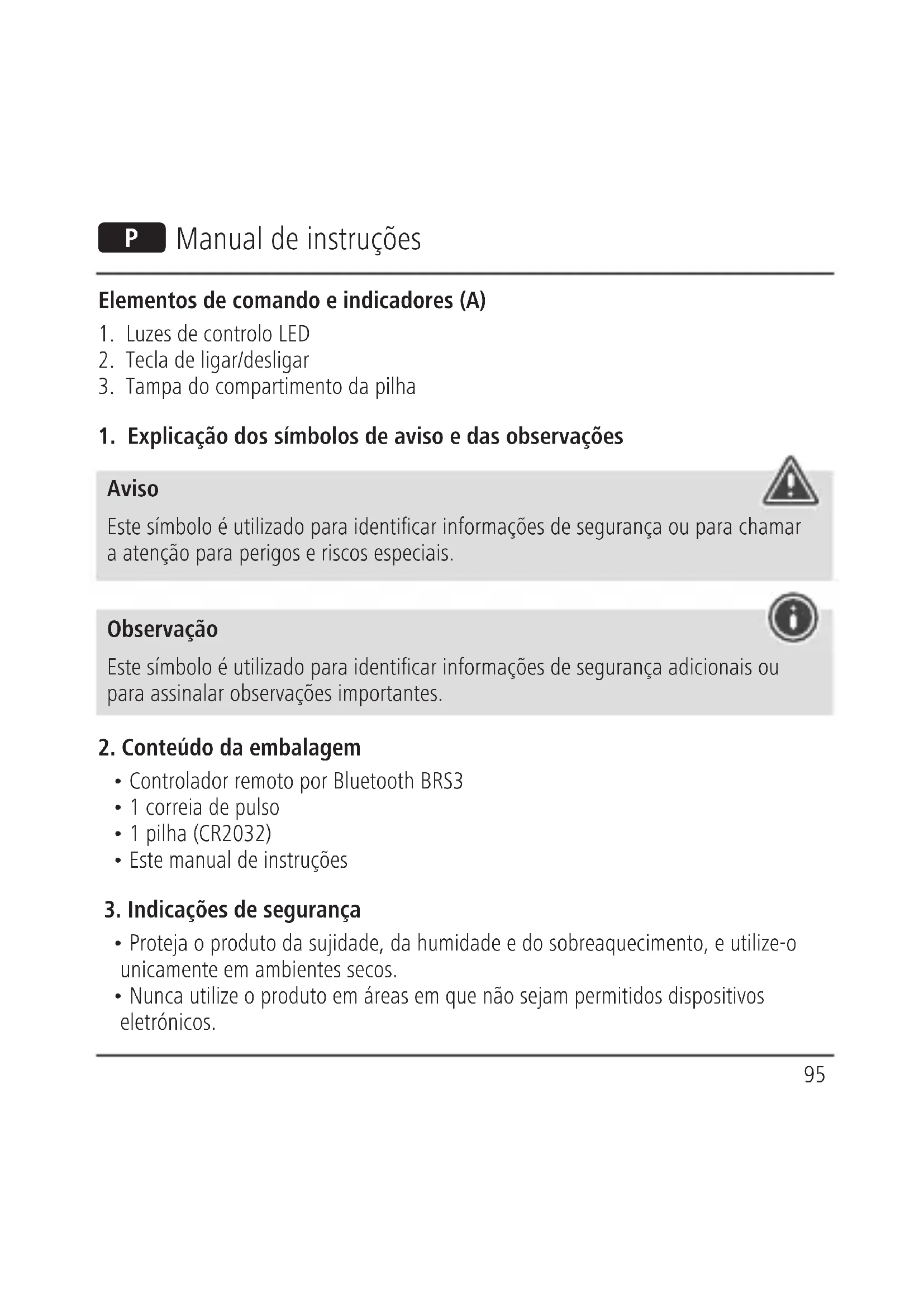 1. Explicação dos símbolos de aviso e das observações
