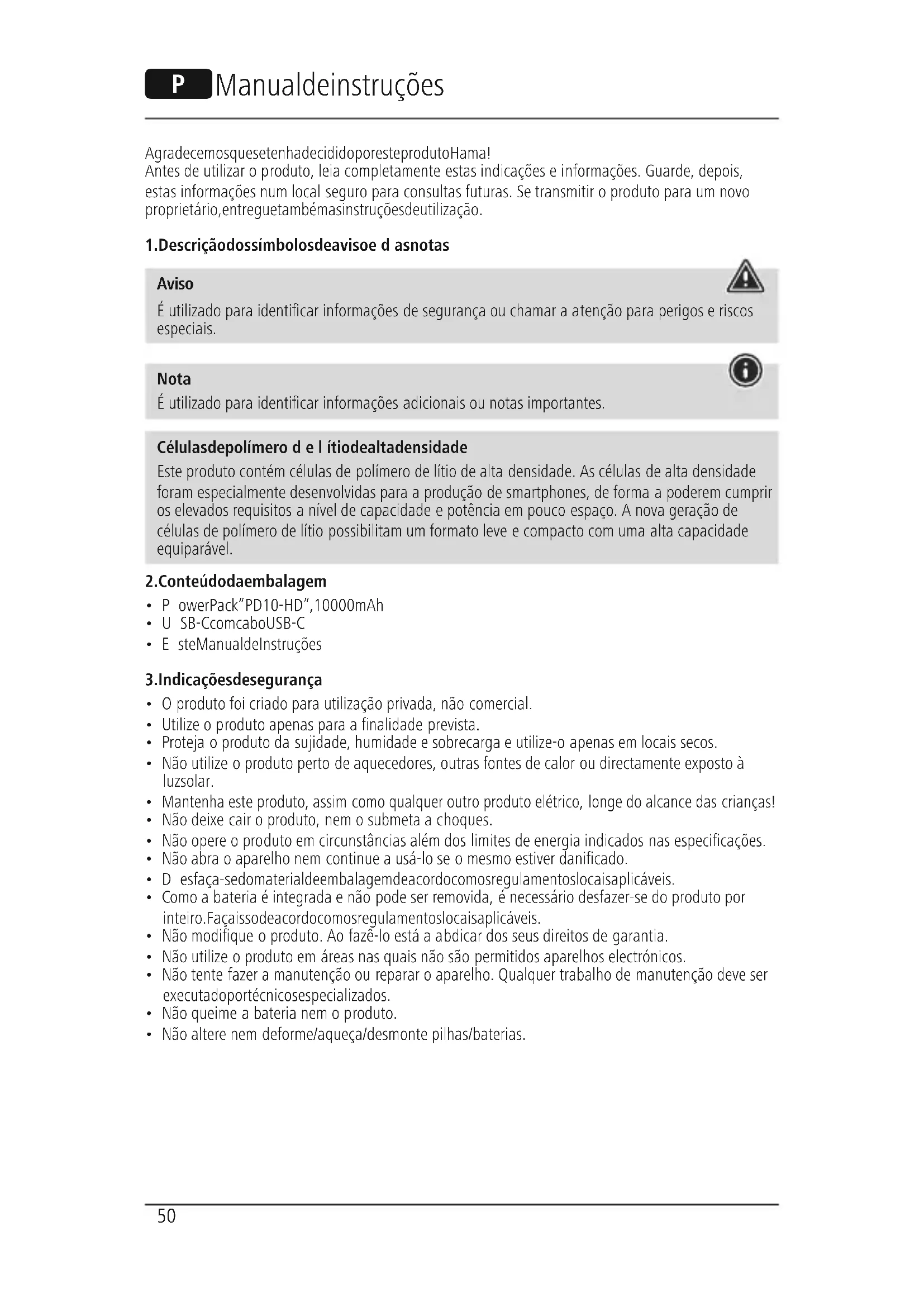 Baixe as instruções para o seu Bateria portátil em formato PDF gratuitamente! Encontre o seu manual 73210588 - HAMA e retome o controlo do seu dispositivo eletrónico. Nesta página estão publicados todos os documentos necessários para a utilização do seu dispositivo. 73210588 da marca HAMA.