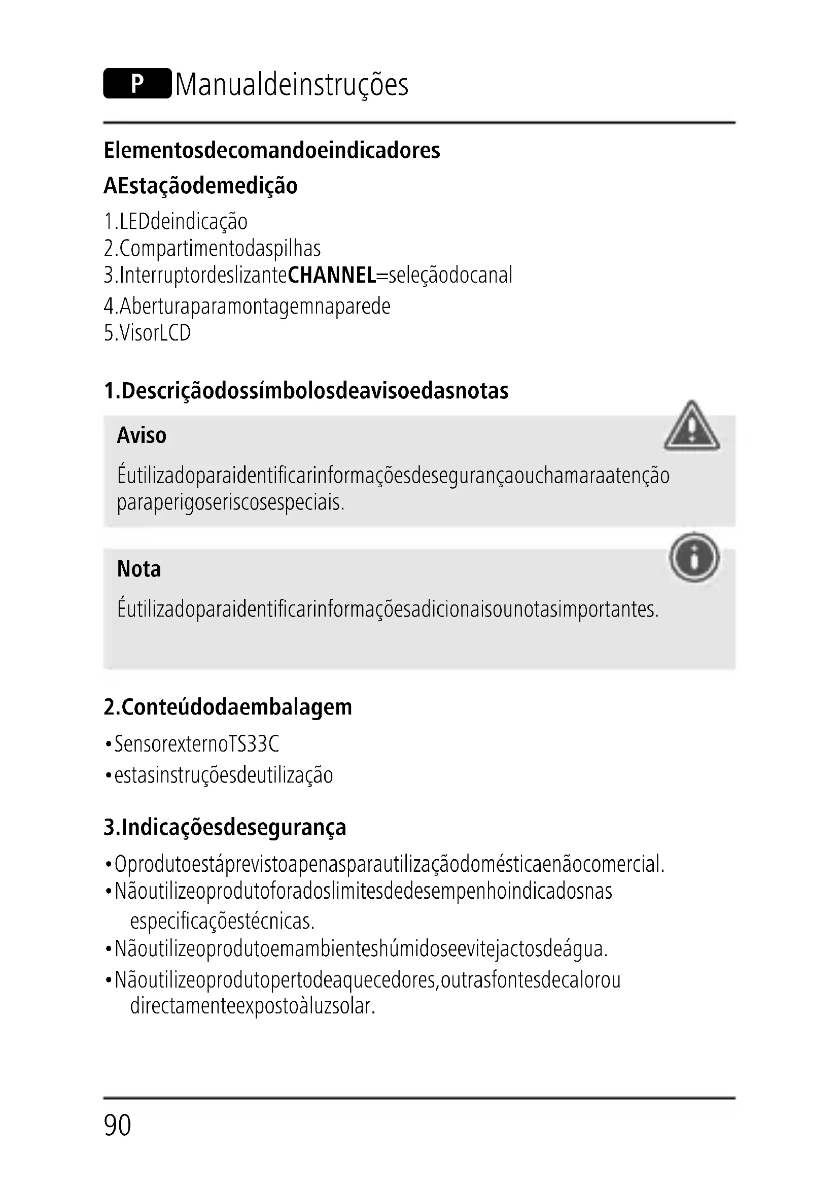 - Remova as pilhas do produto se este não for utilizado durante um longo período de tempo. (a não ser que seja necessário mantê-las no produto para uma emergência).92 Aviso – Pilhas