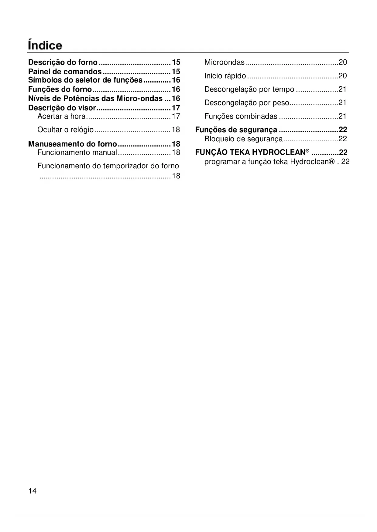 - function to work properly. Before touching the inside surface of the oven, make sure that it has cooled properly.14 Descrição do forno p. 15