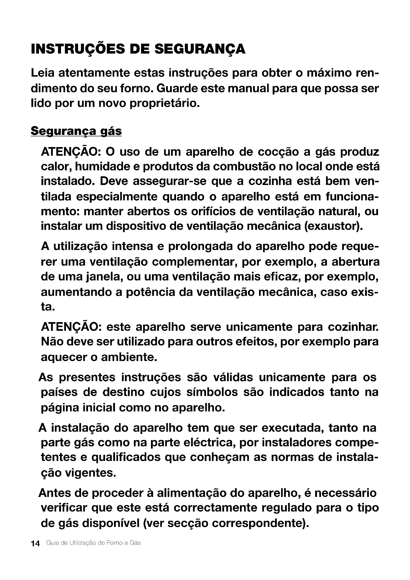 Leia atentamente estas instruções para obter o máximo ren- dimento do seu forno. Guarde este manual para que possa ser lido por um novo proprietário. Segurança gás