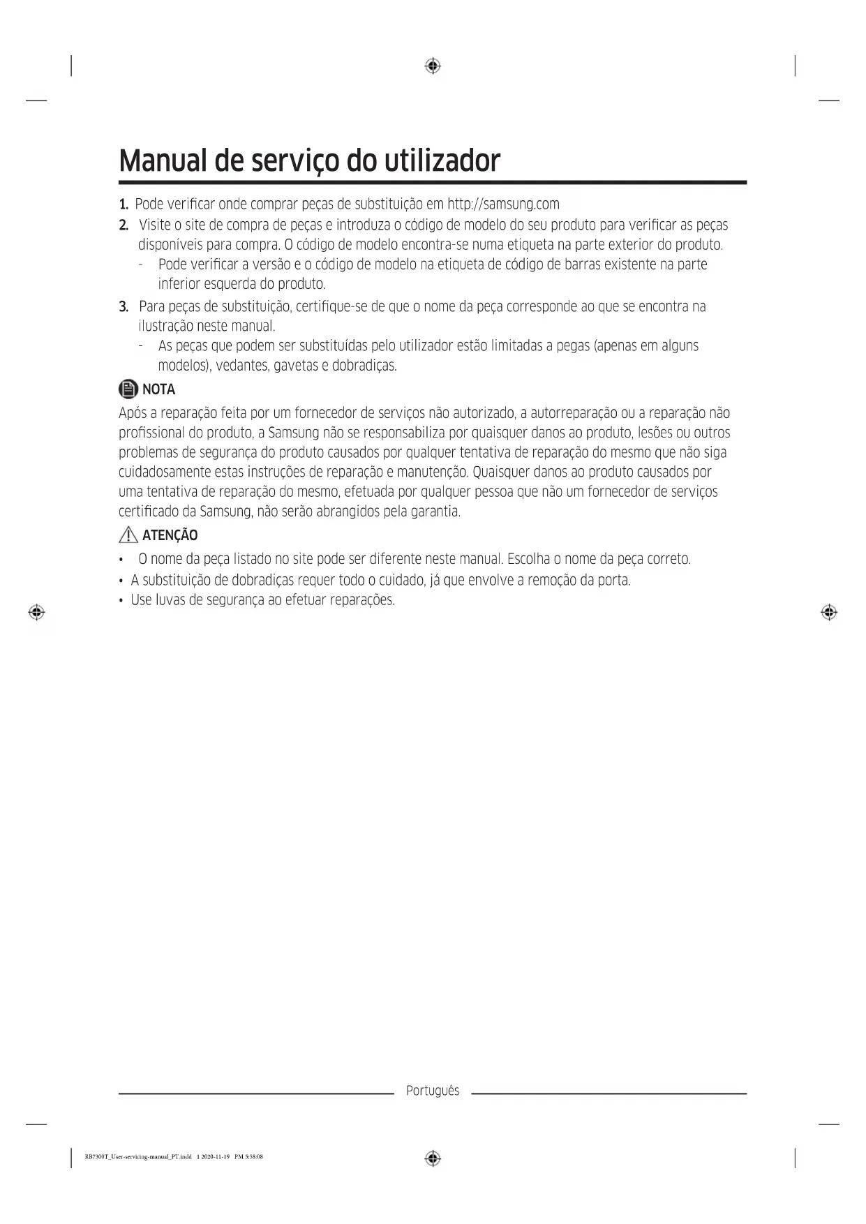- Este passo poderá não ser aplicável a alguns modelos. RB7300T_User-servicing-manual_PT.indd 6 2020-11-19 PM 5:58:22Português