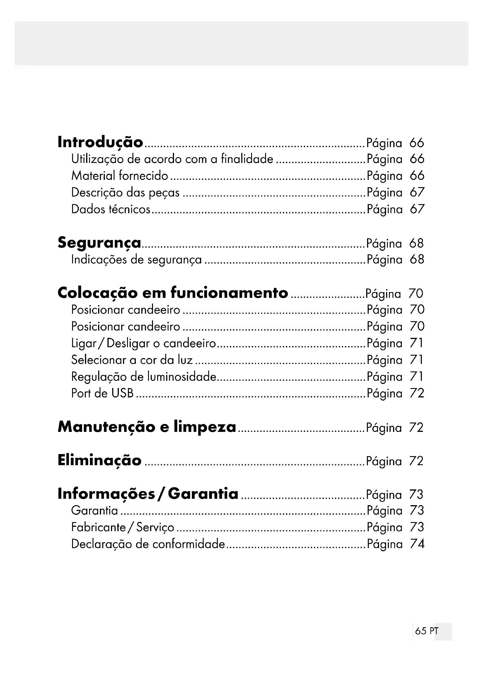 se encontra no lado de trás do candeeiro. Através dele é possível carregar telemóveis, tablets etc. Manutenção e limpeza