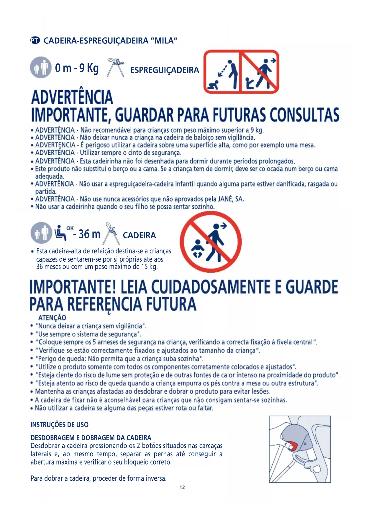 Mila - Cadeira alta JANE - Manual de utilização gratuito