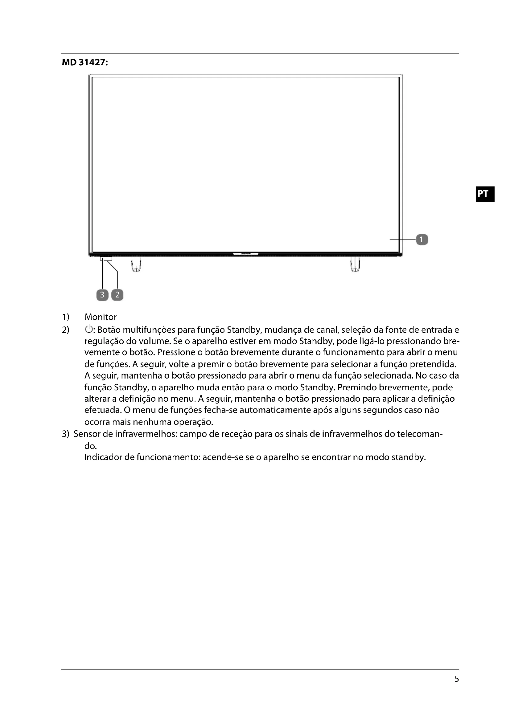 PT2. Vista geral do aparelho 2.1. Parte da frente MD 31425: