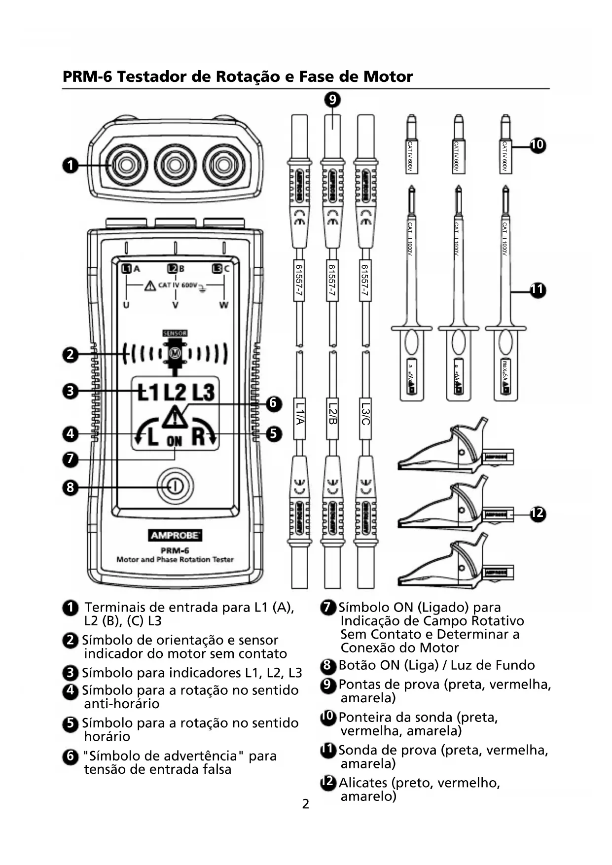 (Correspondência apenas - nenhum reparo ou substituição disponível neste endereço. Clientes europeus favor entrar em contato com seu distribuidor.)1 PRM-6 Testador de Rotação e Fase de Motor ÍNDICE SÍMBOLO ............................................................................................................ 3