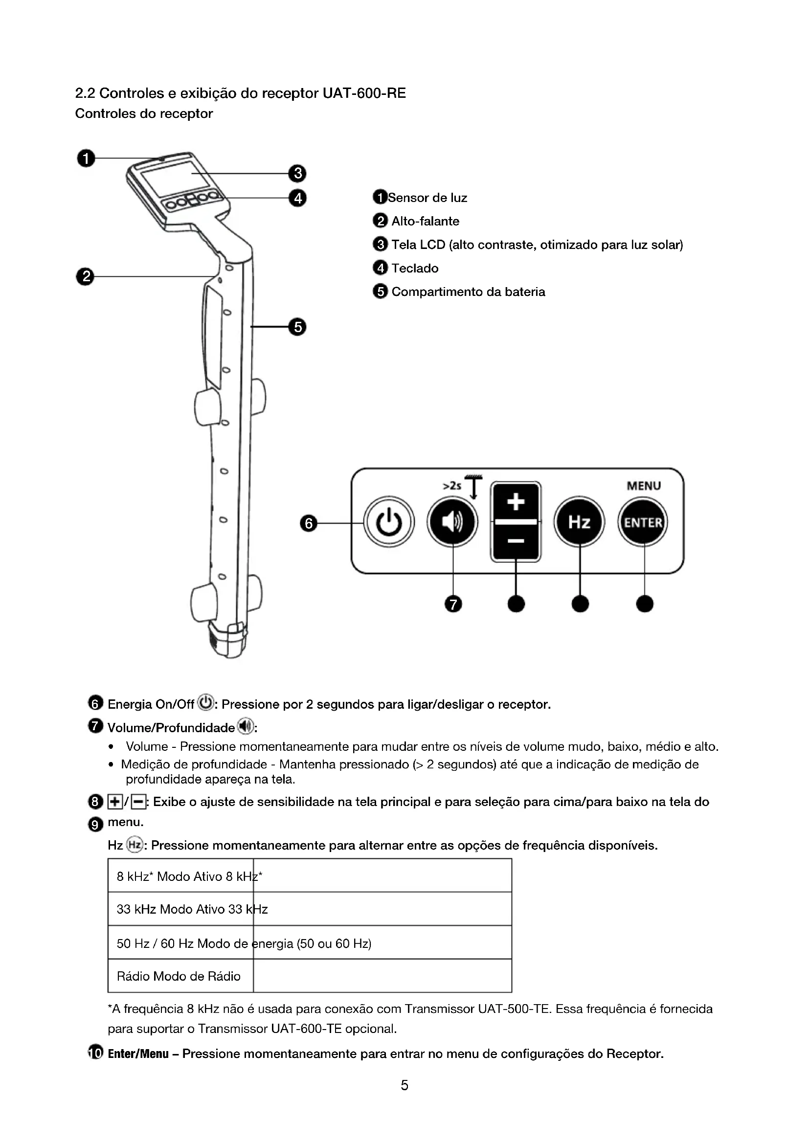 2.2 Controles e exibição do receptor UAT-600-RE