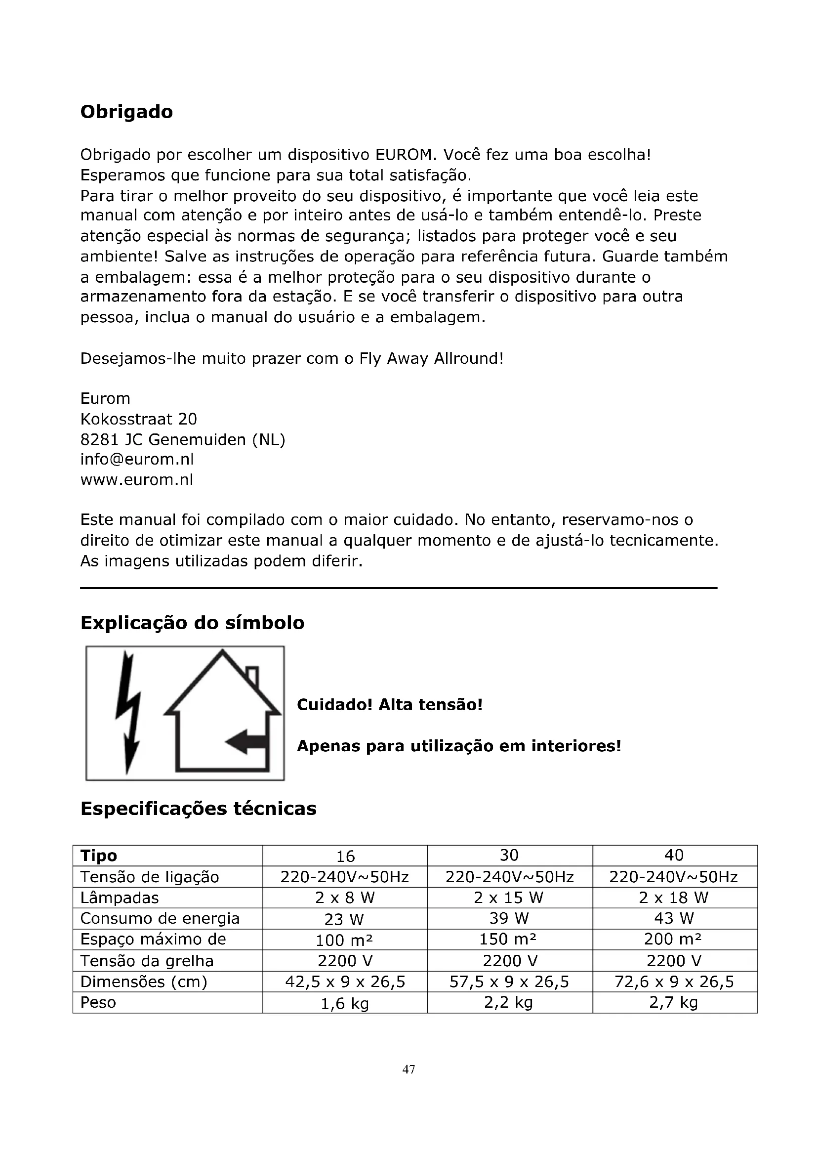 Fly Away 16 Allround - Controle de pragas Eurom - Manual de utilização gratuito