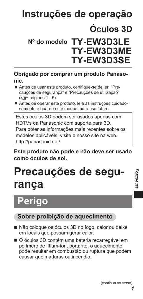 TY-EW3D3SE - Accessoires de télévision PANASONIC - Manual de utilização gratuito