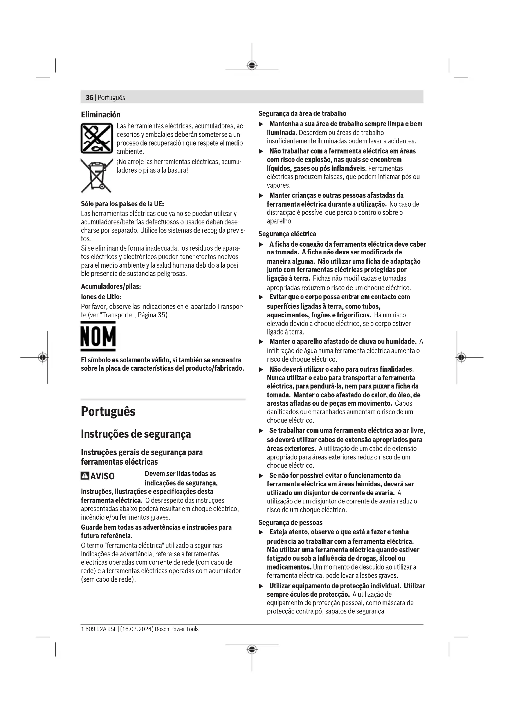 Medido a 20–25°C com bateria GBA18V5.0Ah. B) dependendo da bateria utilizada C) potência limitada perante temperaturas < 0 °C D) Peso sem bateria Os valores podem variar em função do produto e estar sujeitos a condições de aplicação e do meio ambiente. Para mais informações consulte www.bosch-professional.com/wac. Informação sobre ruídos/vibrações Os valores de emissão de ruído foram determinados de acordo com EN62841-2-2. O nível de pressão sonora avaliado como A da ferramenta elétrica é normalmente de 84dB(A). Incerteza K=3 dB. O nível sonoro durante os trabalhos pode ultrapassar os 80 dB(A). Utilizar proteção auditiva! Valores totais de vibração a