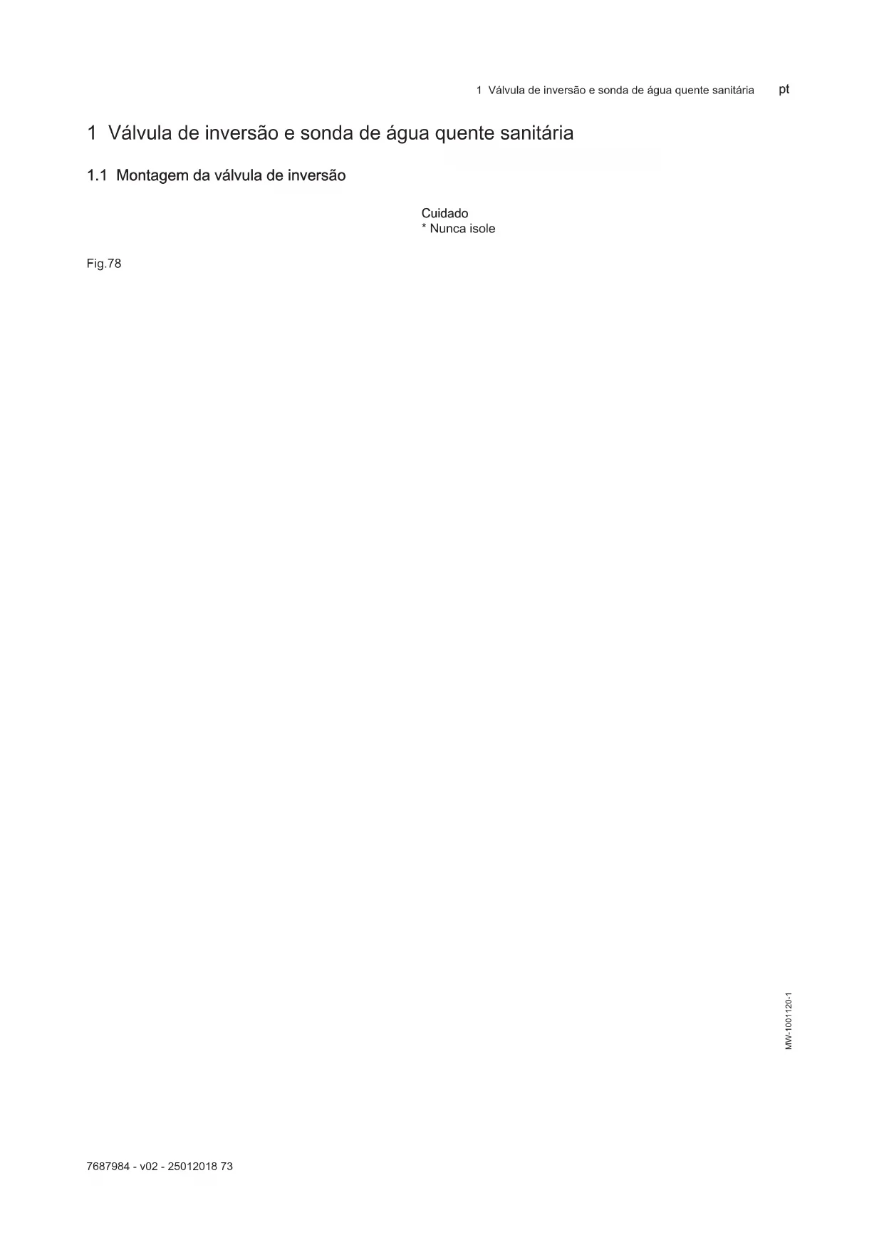 - Nunca isole Fig.78 MW-1001120-1 1 Válvula de inversão e sonda de água quente sanitária