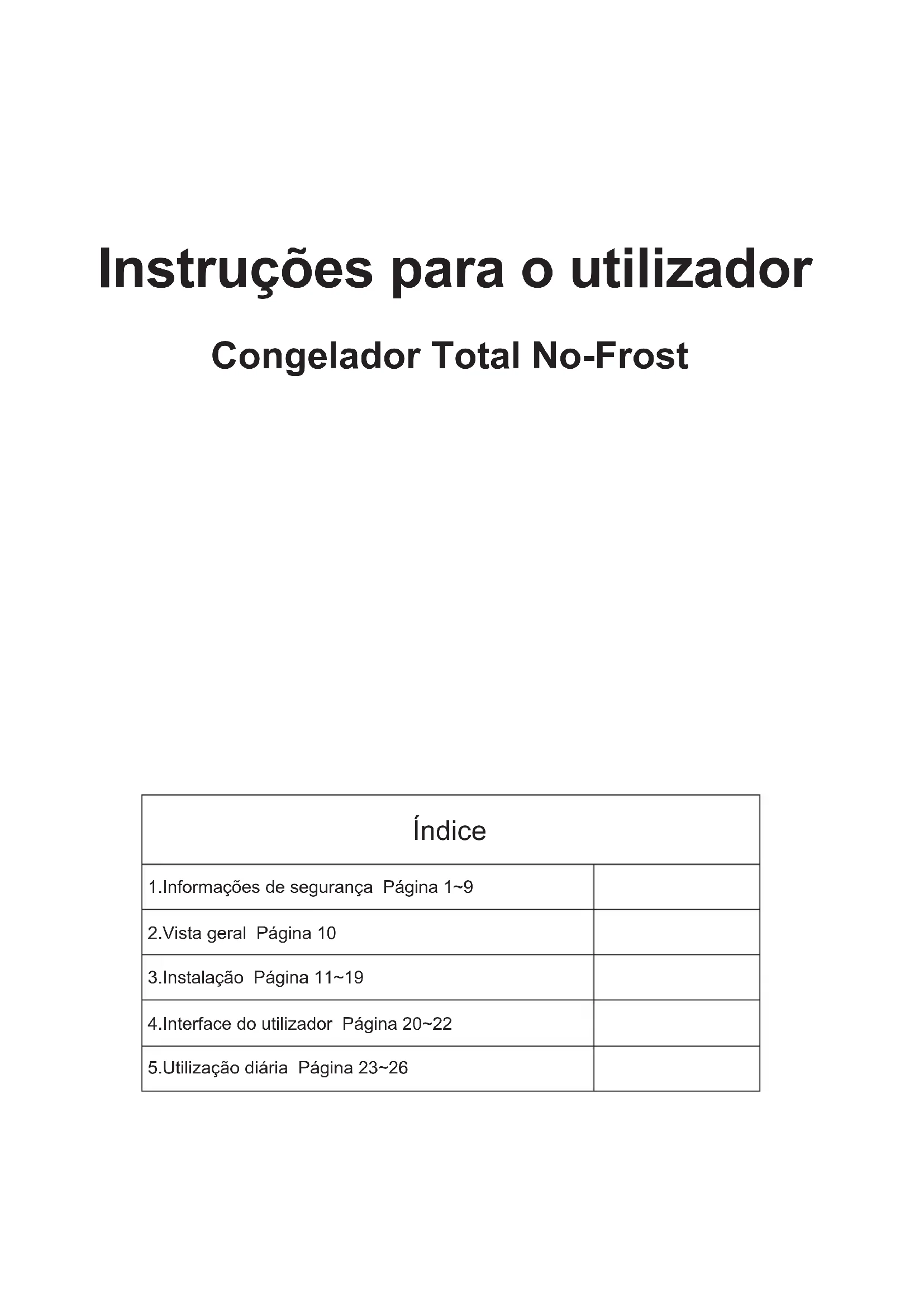 Leia atentamente as instruções de funcionamento e instalação! Estas contêm informações importantes sobre como instalar, usar e fazer a manutenção do aparelho. O fabricante não é responsável se não cumprir as instruções e avisos. Guarde todos os documentos para uso subsequente ou para o próximo proprietário. x Não ligue o aparelho à alimentação de energia até que todas as proteções de embalagem e de transporte tenham sido removidas. Mantenha as crianças afastadas da embalagem e das suas peças. Perigo de sufocação devido a caixas de cartão dobráveis e a película plástica! x Deixe repousar durante, pelo menos, 4 horas antes de ligar o produto para permitir que o óleo do compressor estabilize, caso tenha sido transportado na horizontal. x Certifique-se de que não há danos provocados pelo transporte. x Não danifique o circuito refrigerante. 1x Mantenha as aberturas de ventilação no revestimento do aparelho ou na estrutura integrada livres de obstruções. x Nunca use água para lavar a área do compressor, limpe-a cuidadosamente com um pano seco depois de limpar para evitar a ferrugem. x Manuseie o aparelho sempre com pelo menos duas pessoas porque é pesado. x Instale e nivele o aparelho numa área adequada para o seu tamanho e utilização. x Certifique-se de que as informações elétricas na placa de classificação correspondem à fonte de alimentação. Se não, entre em contato com um eletricista. x O aparelho é operado por uma fonte de alimentação de 220-240 VAC/50 Hz. Uma flutuação da tensão anormal pode fazer com que o aparelho não ligue ou danifique o controlo da temperatura ou o compressor, ou pode haver um ruído anormal durante o funcionamento. Nesse caso, deve ser montado um regulador automático. x Apenas para o Reino Unido: O cabo de alimentação do aparelho está equipado com uma ficha de 3 cabos (terra) que se encaixa numa tomada standard de 3 cabos (ligada à terra). Nunca corte ou desmonte o terceiro pino (terra). Após a instalação do aparelho, a tomada deve ficar acessível. x Certifique-se que o cabo de alimentação não fica retido sob o aparelho durante ou após o transporte/movimentação do mesmo, para evitar que o cabo de alimentação seja cortado ou danificado. Se o cabo de alimentação estiver 2danificado, tem de ser substituído pelo fabricante, pelo agente de serviço ou por uma pessoa igualmente qualificada de forma a evitar o perigo. x Não instale o aparelho em locais húmidos, oleosos ou poeirentos, nem o exponha à luz solar direta ou à água. x Não instale o aparelho próximo de aquecedores ou materiais inflamáveis. x PARA aparelhos com um compartimento do congelador: se houver uma falha de energia, não abra a tampa. Os alimentos congelados não são afetados se a falha durar menos do que as horas indicadas na etiqueta de classificação (tempo de subida da temperatura). Caso a falha seja mais prolongada, então a comida deve ser verificada e comida de imediato, ou cozinhada e depois novamente congelada. x Caso a tampa do aparelho seja difícil de abrir imediatamente depois de a ter fechado, não se preocupe. Isto deve-se à diferença de pressão que irá equilibrar-se e permitir que a tampa seja aberta normalmente após alguns minutos. x Não guarde medicamentos, bactérias ou agentes químicos no aparelho. Este aparelho é um eletrodoméstico, não é recomendado para armazenar materiais que requerem temperaturas rigorosas. x Não puxe ou dobre o cabo de alimentação excessivamente ou toque na ficha com as mãos molhadas. 3x Não armazene produtos que contenham propulsor inflamável (por ex. latas de sprays) ou substâncias explosivas no aparelho. Risco de explosão! x Não coloque artigos instáveis (objetos pesados, recipientes cheios de água) em cima do frigorífico, para evitar lesões pessoais causadas por queda ou choque elétrico causado pelo contato com a água. x Não use aparelhos elétricos no interior dos compartimentos para armazenamento de comida do aparelho, a não ser que sejam do tipo recomendado pelo fabricante. x Não toque nos elementos de arrefecimento internos, especialmente com as mãos molhadas, para evitar fissuras ou lesões. x Correm maior risco as crianças, pessoas com capacidades físicas, mentais ou sensoriais limitadas, bem como pessoas que têm conhecimento inadequado sobre a operação segura do aparelho. x Verifique se as crianças e as pessoas vulneráveis compreenderam os riscos. Uma pessoa responsável pela segurança deve fiscalizar ou instruir as crianças e pessoas vulneráveis que estão a utilizar o aparelho. Apenas crianças com idade igual ou superior a 8 anos podem utilizar o aparelho. x As crianças não devem brincar com o aparelho. 4x Crianças com idades entre 3 e 8 anos têm permissão para carregar e descarregar este aparelho. x PARA aparelhos com um compartimento do congelador: não armazene líquidos engarrafados ou enlatados (especialmente bebidas gaseificadas) no congelador. As garrafas e latas podem explodir! x PARA aparelhos com um compartimento do congelador: nunca coloque alimentos congelados, diretamente do compartimento do congelador, na boca. Risco de queimaduras de baixa temperatura! x Mantenha as peças plásticas e o vedante da porta isentos de óleo e gordura. Caso contrário, as peças plásticas e o vedante da porta tornar-se-ão porosas. x Antes de realizar qualquer operação, desligue o cabo de alimentação da tomada. x Não utilize dispositivos mecânicos ou outros meios para acelerar o processo de descongelação, que não os recomendados pelo fabricante. x Não use objetos pontiagudos ou afiados tais como facas ou garfos para remover o gelo. x Nunca use secadores de cabelo, aquecedores elétricos ou outros aparelhos similares para a descongelação. x Recomendamos que mantenha a ficha limpa, quaisquer resíduos de poeira excessivos na ficha podem causar um incêndio. x Não tente reparar, desmontar ou modificar o aparelh