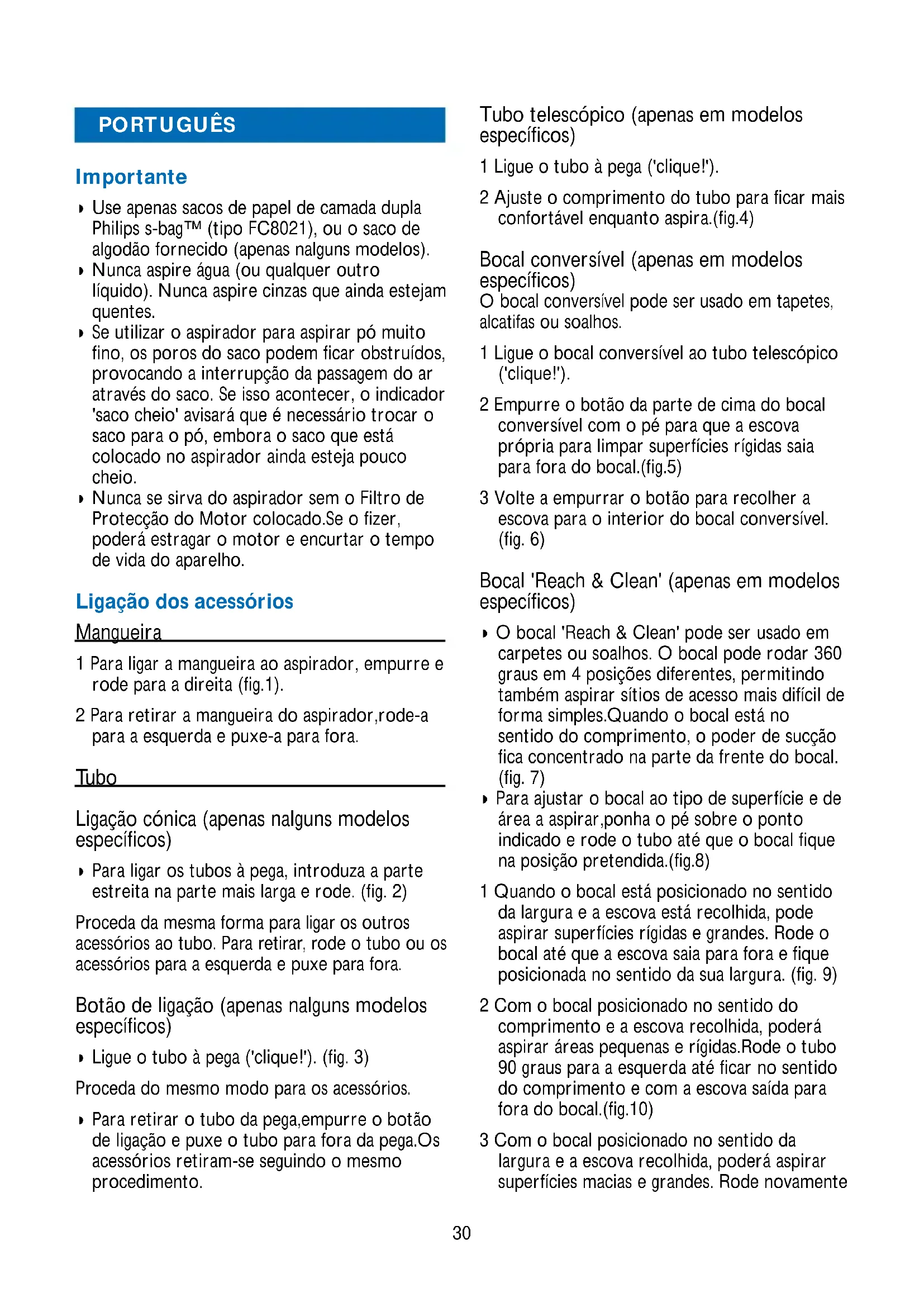 - O bocal 'Reach & Clean' pode ser uso em carpetes ou soalhos. O bocal pode rodar 360 graus em 4 posições发展目标, permitindo maisular aspirar sitios de acesso mais dificil de forma simples. quando o bocal está no sentido do comprimento, o poder de sucao fica concentrado na parte da fronte do bocal. (fig. 7)