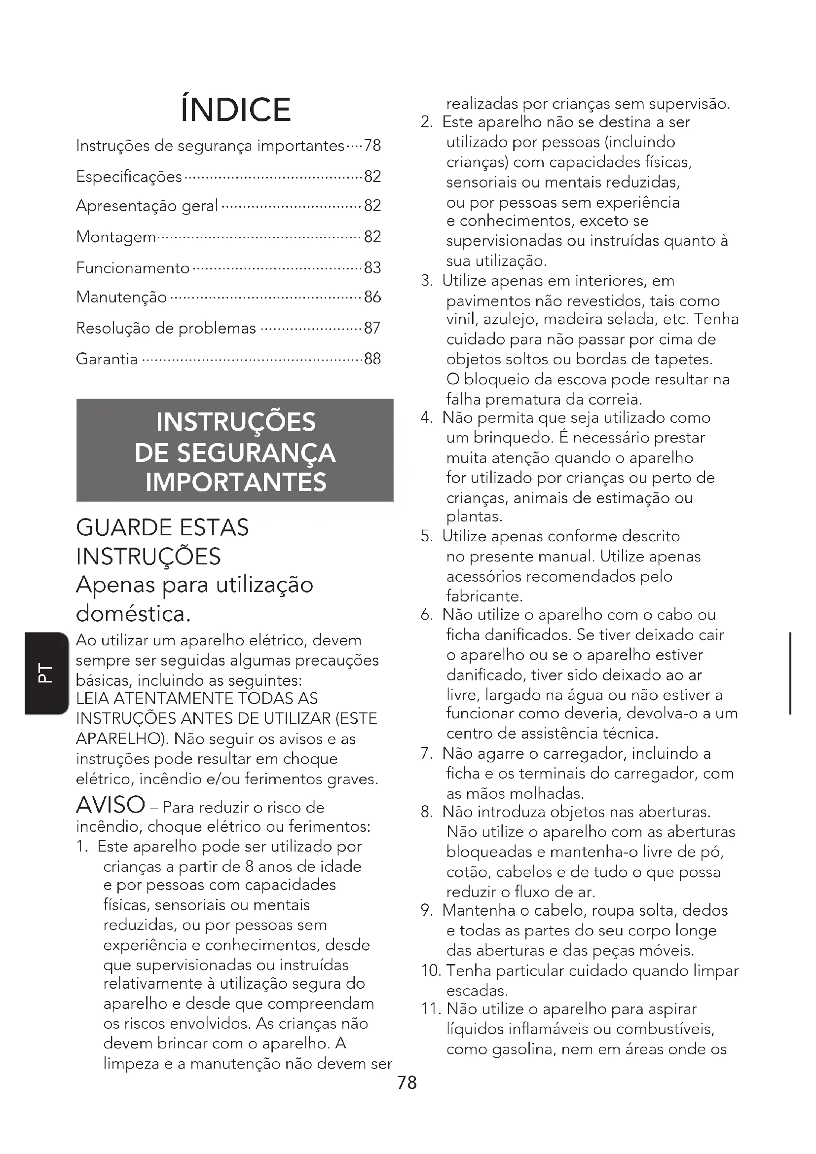 Ao utilizes um aparelho eletrico, devem sempre ser seguidas algumas precauções tíbasicas, incluindo as seguiñes: LEIA ATENTAMENTE TODAS AS INSTRUÇÉS ANTES DE UTILizar (ESTE APARELHO). Não seguir os avisos e as instruções pode resultar emCHO que eletrico, incêndio e/ou ferimentos graves.