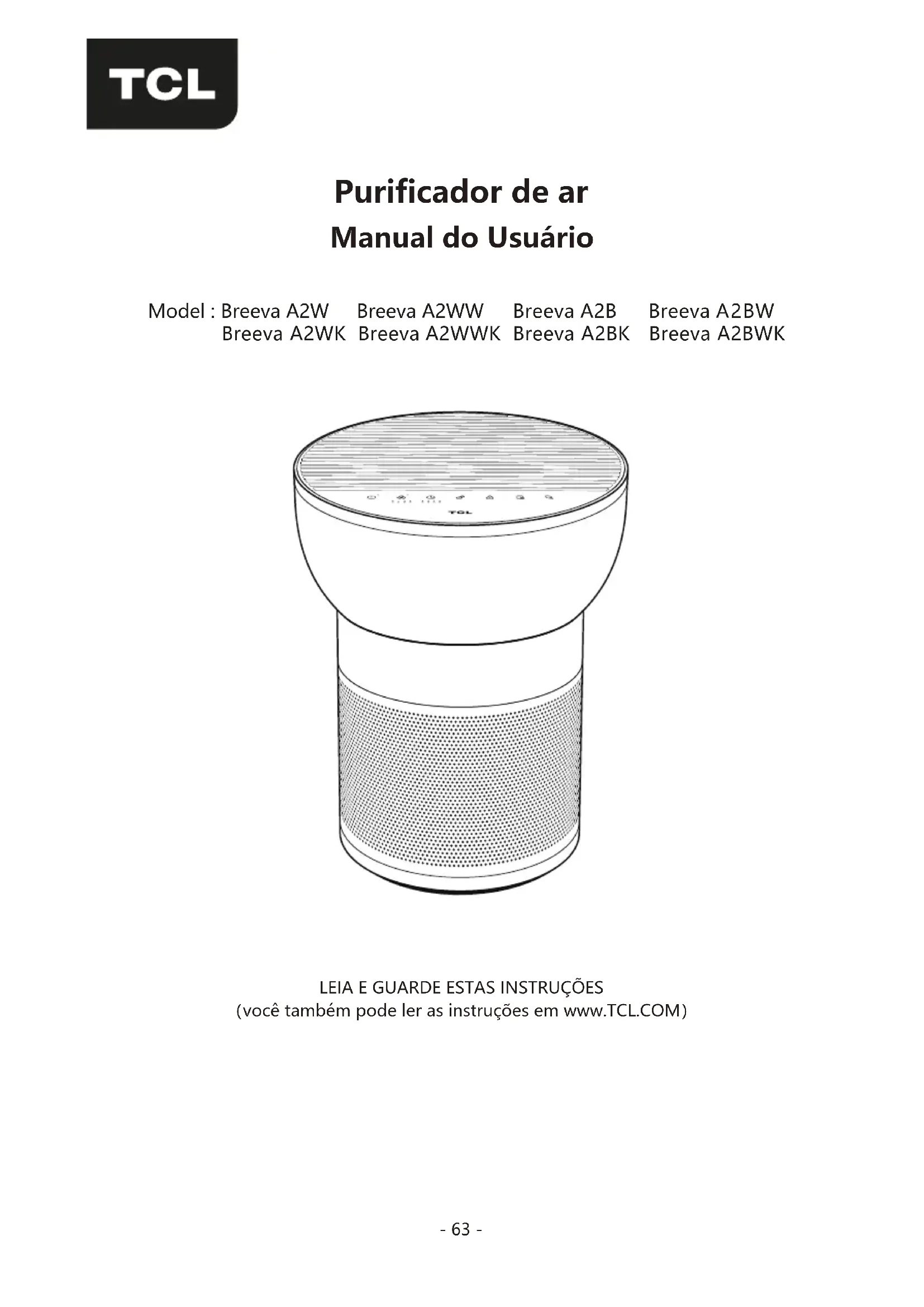 Breeva A2WW - Purificador de ar TCL - Manual de utilização gratuito