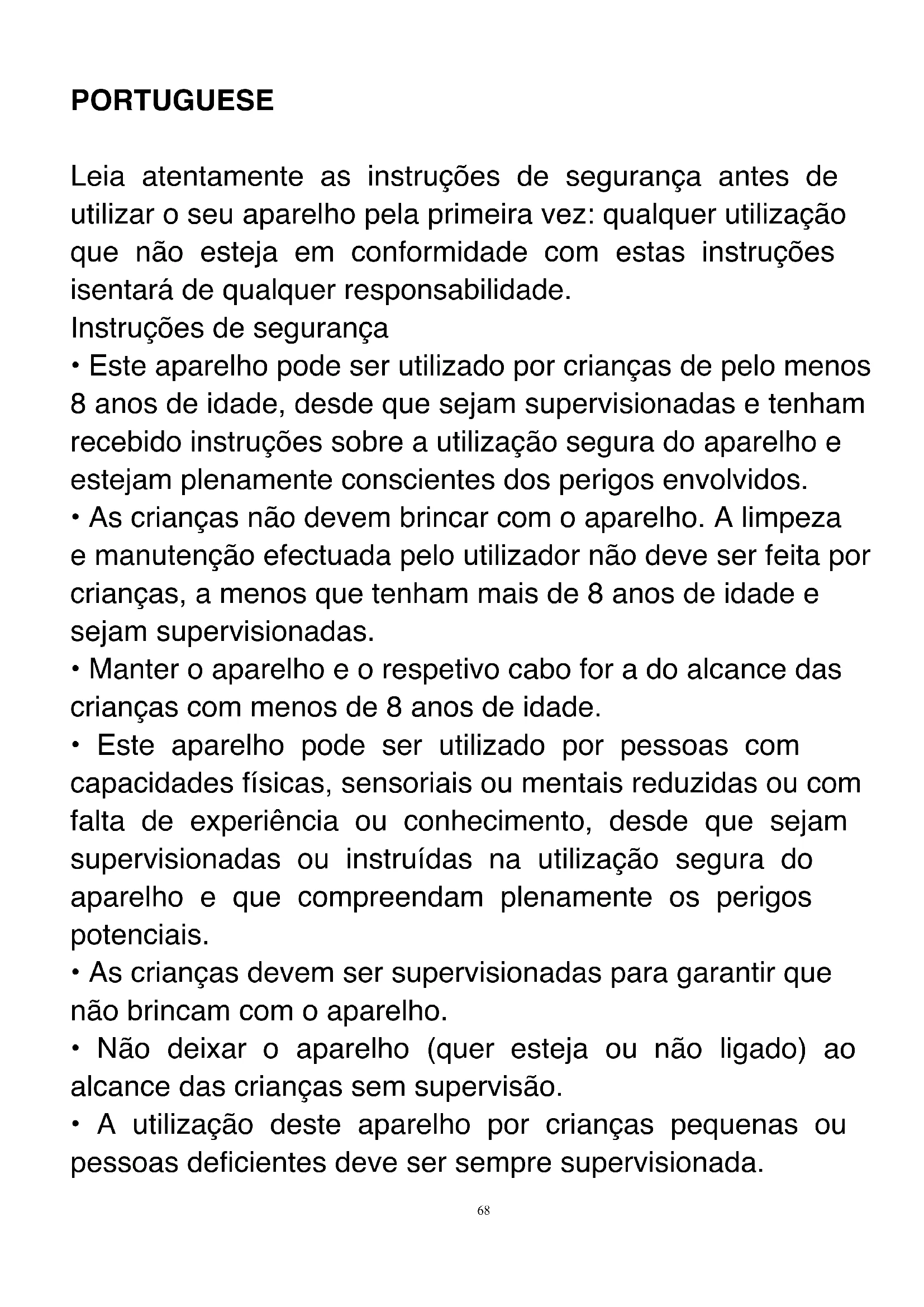 - A utilização deste aparelho por crianças pequenas ou pessoas deficientes deve ser sempre supervisionada.69