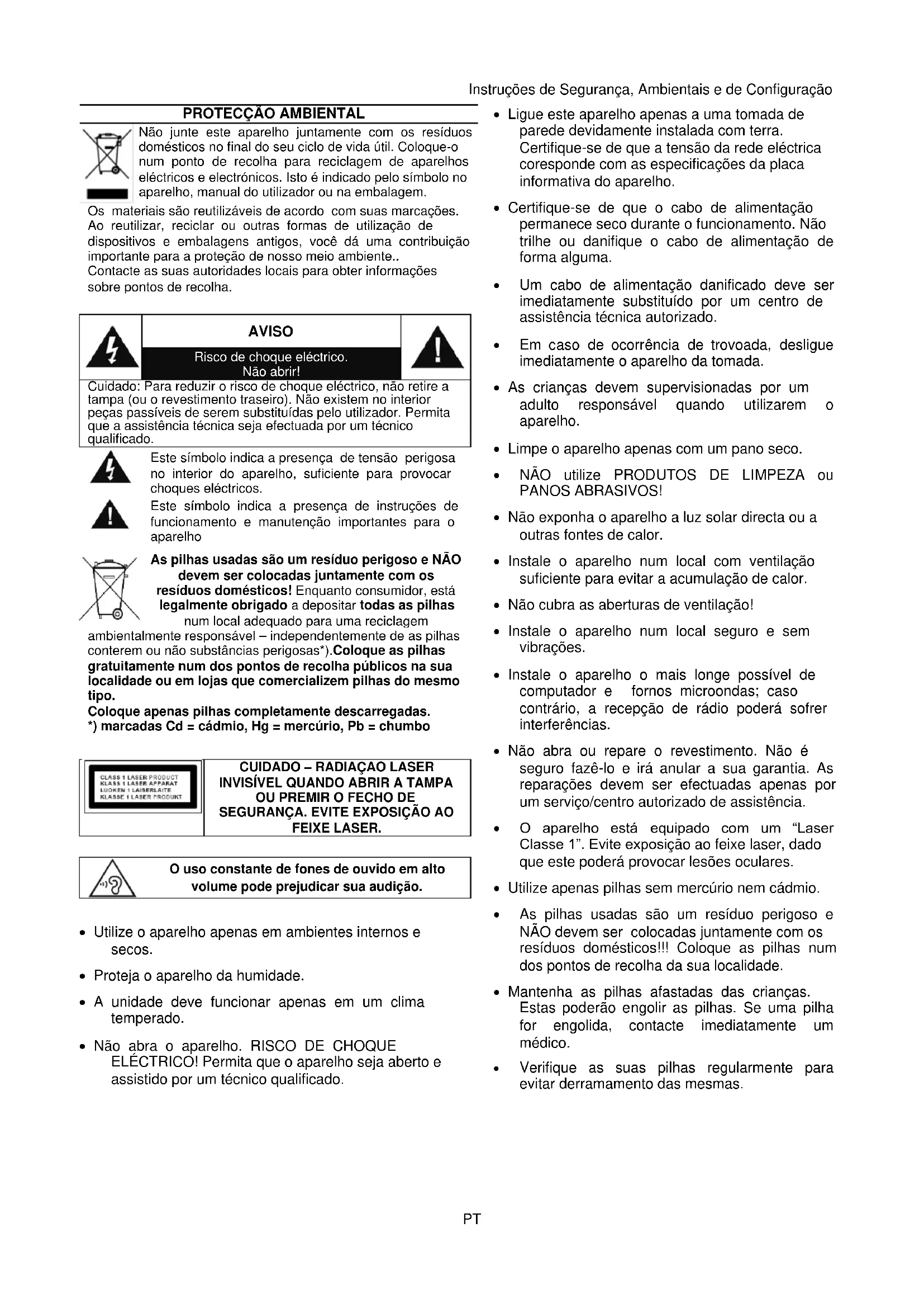 - Verifique as suas pilhas regularmente para evitar derramamento das mesmas.RCD1185 / Manual de instruções em português