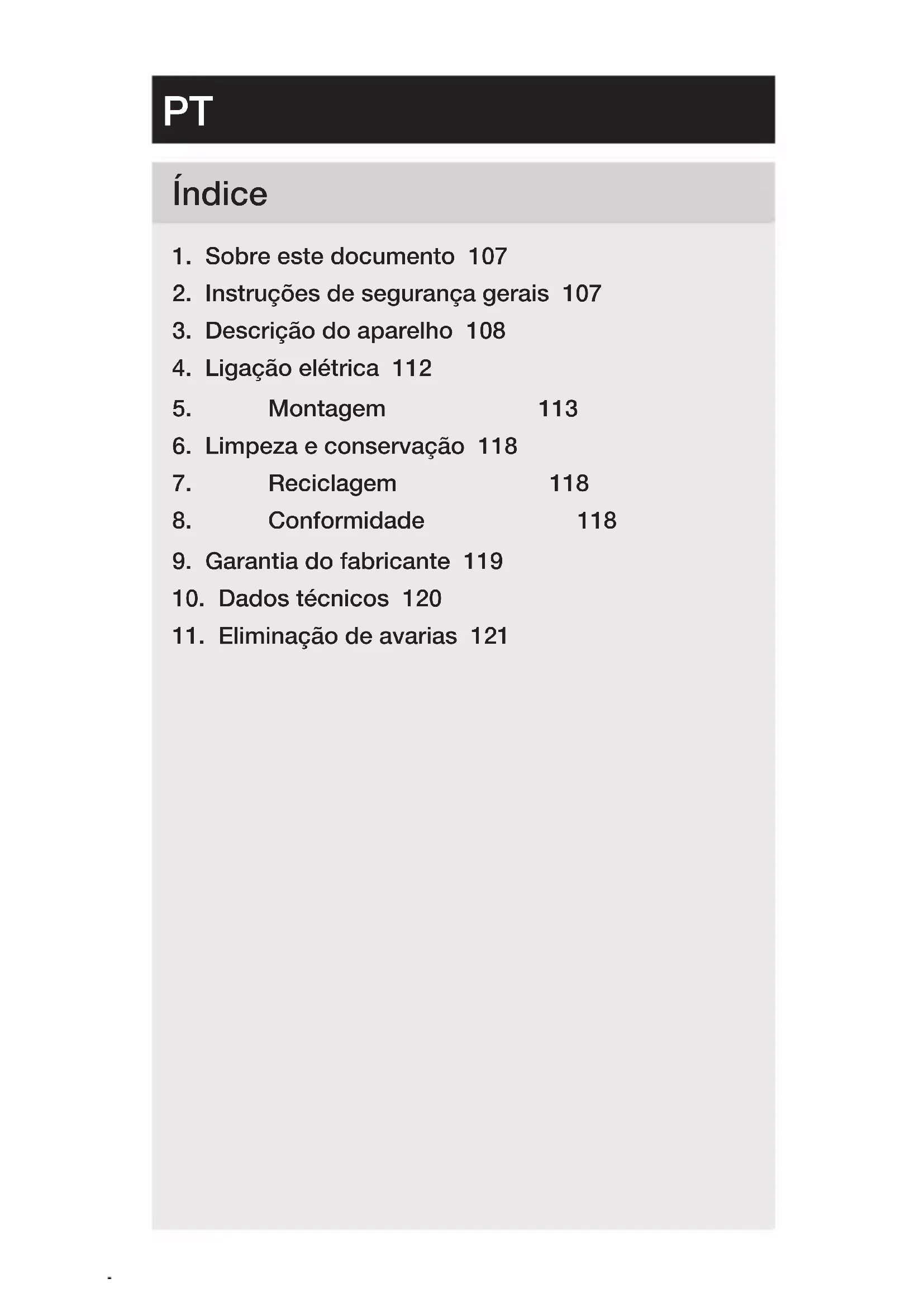- Instruções de segurança gerais 107