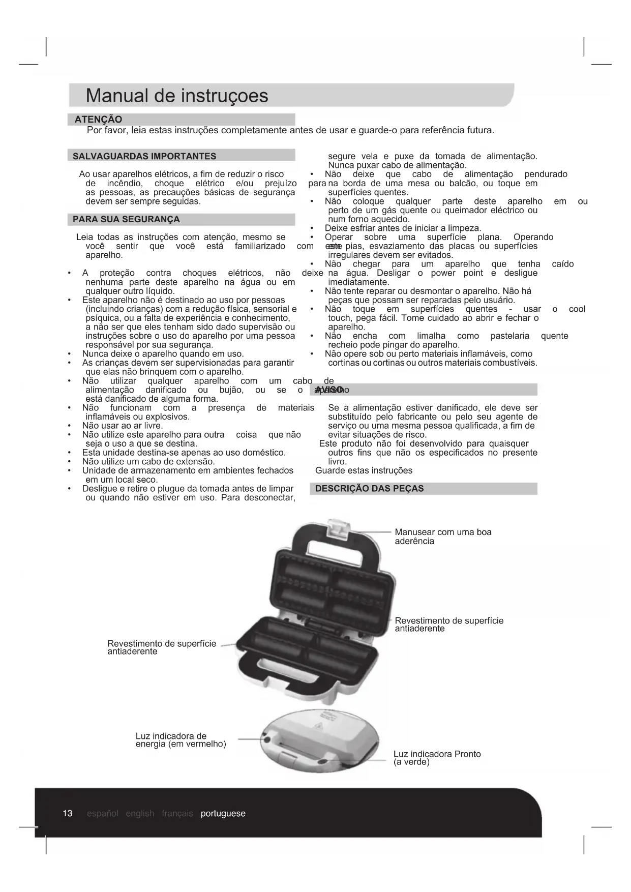 Ao usar aparhos eletricos, a fim de reduzir o risco de incendidio,CHOQUE eltrico e/ou prejuizo as pessoas, as precauçõesbasicas de seguranca devem ser sempre seguidas.