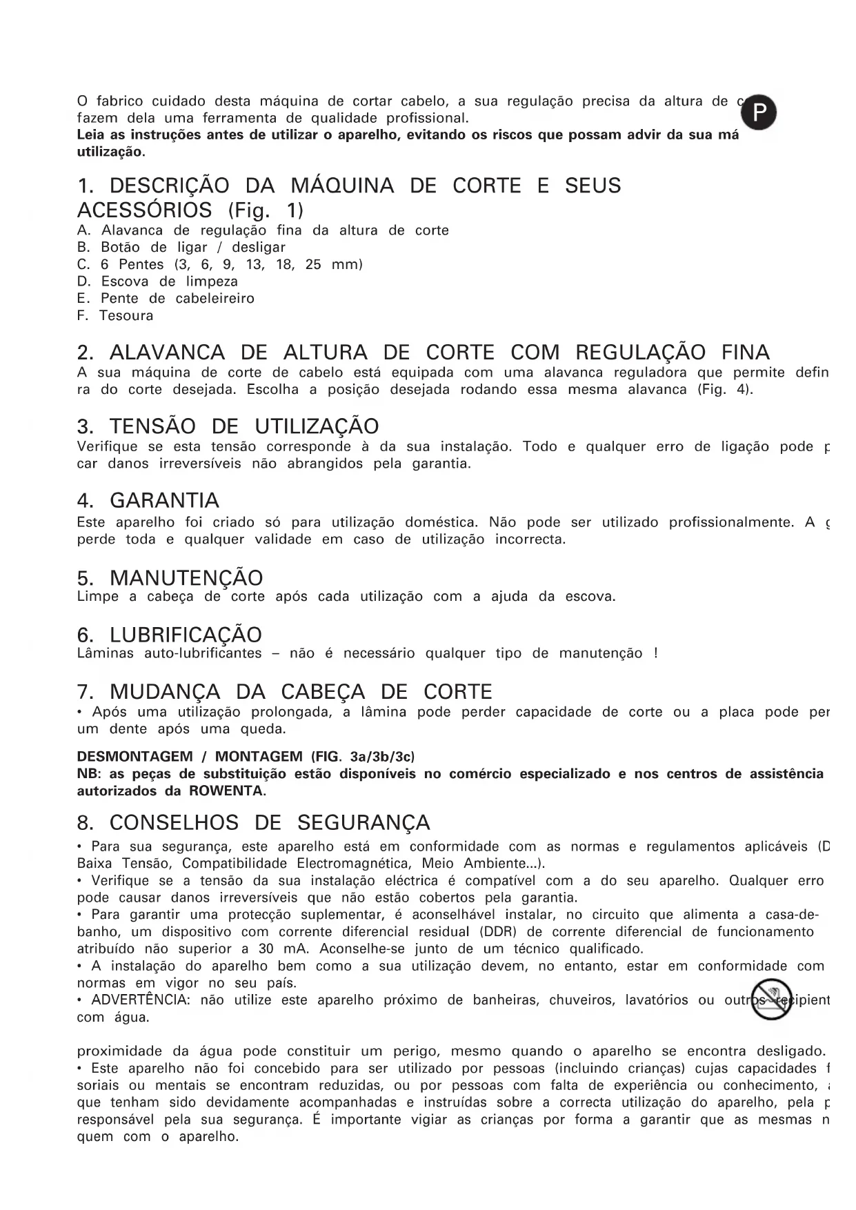 - Após uma utilização prolongada, a lâmina pode perder capacidade de corte ou a placa pode perder um dente após uma queda. DESMONTAGEM / MONTAGEM (FIG. 3a/3b/3c) NB: as peças de substituição estão disponíveis no comércio especializado e nos centros de assistência autorizados da ROWENTA.
