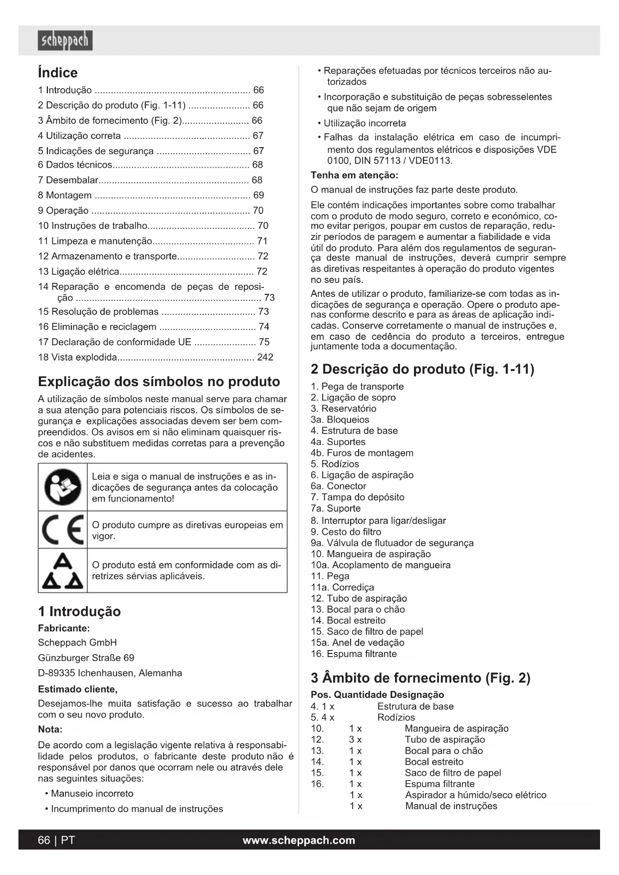 2 Descrição do produits (Fig. 1-11) 66