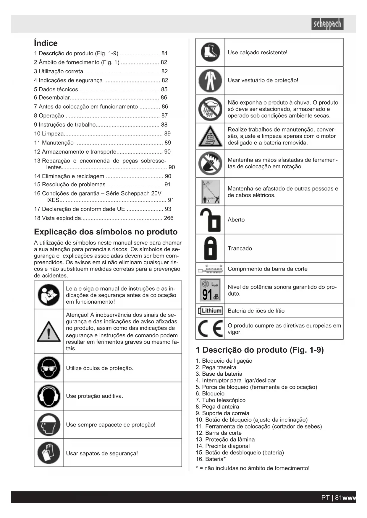 - 16 Condições de garantia – Série Scheppach 20V IXES p. 91