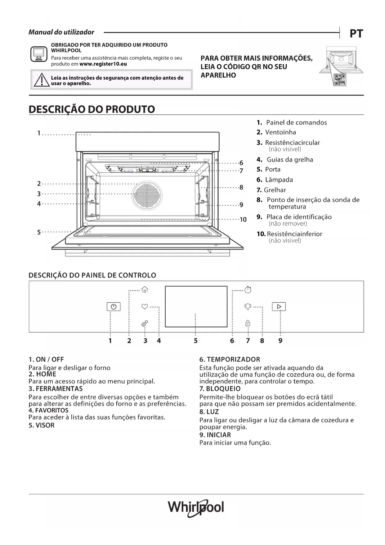 WCW9O7PHTSB - Forno WHIRLPOOL - Manual de utilização gratuito