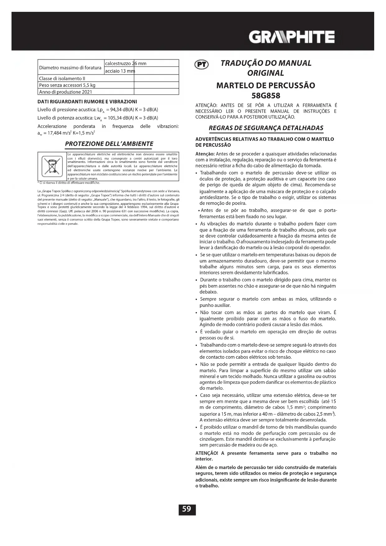 58G858 - Furadeira Graphite - Manual de utilização gratuito