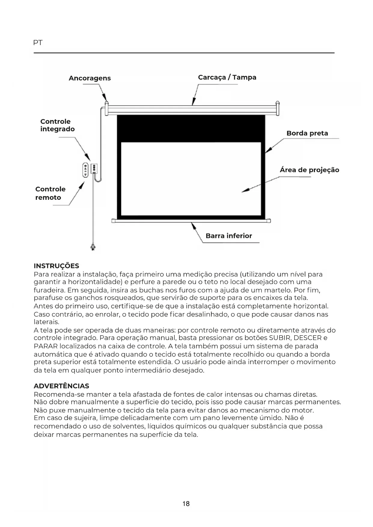 Quando a tela estiver conectada à energia, o LED de alimentação do controlador ficará aceso. Pressione o botão de subida, você ouvirá “du-” e a tela subirá. Pressione o botão de descida, você ouvirá “du-” e a tela descerá. Pressione o botão de parada, você ouvirá “du-” e a tela parará. CONTROLADOR CONTROLE REMOTO 19Política de garantia Declaração De Conformidade Simplificada Em cumprimento do estabelecido no Decreto-Lei n.º 84/2021 https://dre.pt/dre/detalhe/de- creto-lei/84-2021-172938301, colocamos à disposição dos interessados toda a informação necessária para poder exercer todos os direitos de desistir de acordo com as normas contidas nesta lei, dando por cumpridos os requisitos que a lei exige ao vendedor no contrato de venda. As características técnicas e eléctricas que aqui se indicam podem ser válidas para outras unidades semelhantes às nossas e poderão ser trocadas sem aviso prévio com o objetivo de oferecer um equipamento melhor. Pela presente, a La Trastienda Digital SL, na qualidade de proprietária da marca comercial Prixton, com sede no Avenida Cervantes 49, módulo 25, Basauri 48970, Bizkaia, declara que o tipo de equipamento radioelétrico que de seguida se expõe: Está em conformidade com a Diretiva 2014/53/UE do Parlamento Europeu e do Conselho de 16 de abril de 2014. O texto completo da declaração UE de conformidade pode ser consultado no seguinte endereço Web: www.prixton.com