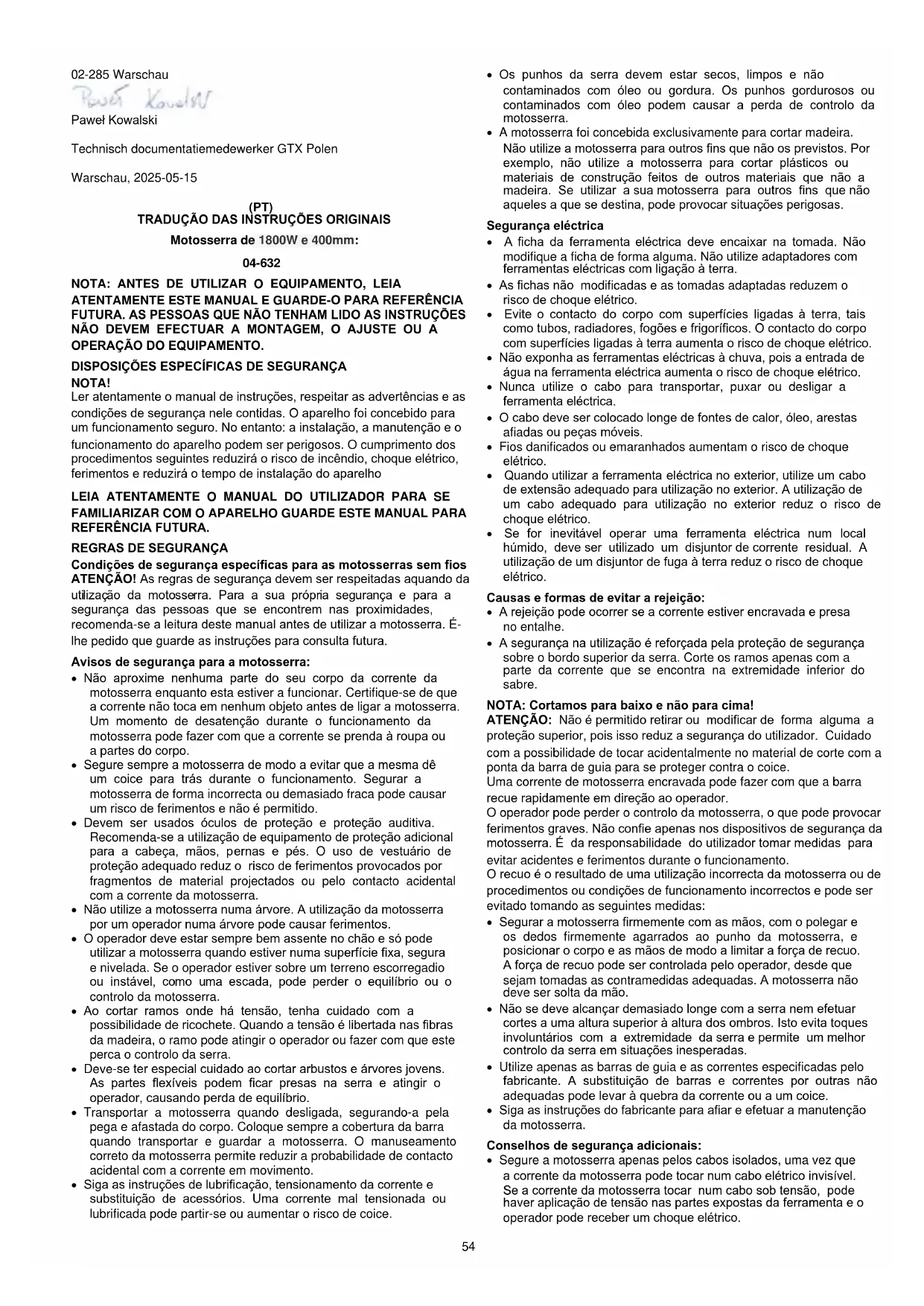 Condições de segurança espécicas para as motosserras sem fios ATENÇAO! As regras de segurança devem ser respeitadas aquando da utilizesçao da motosserra. Para a sua和个人a seguranca e para a seguranca das pessoas que se encontrem nas proximidades, recomenda-se a leitura deste manual antes deutilizar a motosserra. ÉIhe pedido que guarde as instruções para consulta futura.
