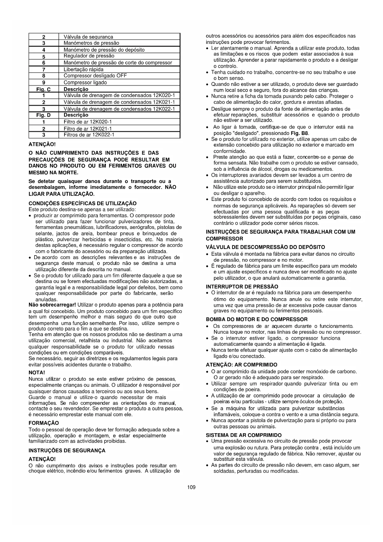 - Este produto foi concebido de acordo com todos os requisitos e normas de segurança aplicáveis. As reparações só devem ser efectuadas por uma pessoa qualificada e as peças sobressalentes devem ser substituídas por peças originais, caso contrário o utilizador pode correr sérios riscos. INSTRUÇÕES DE SEGURANÇA PARA TRABALHAR COM UM COMPRESSOR VÁLVULA DE DESCOMPRESSÃO DO DEPÓSITO