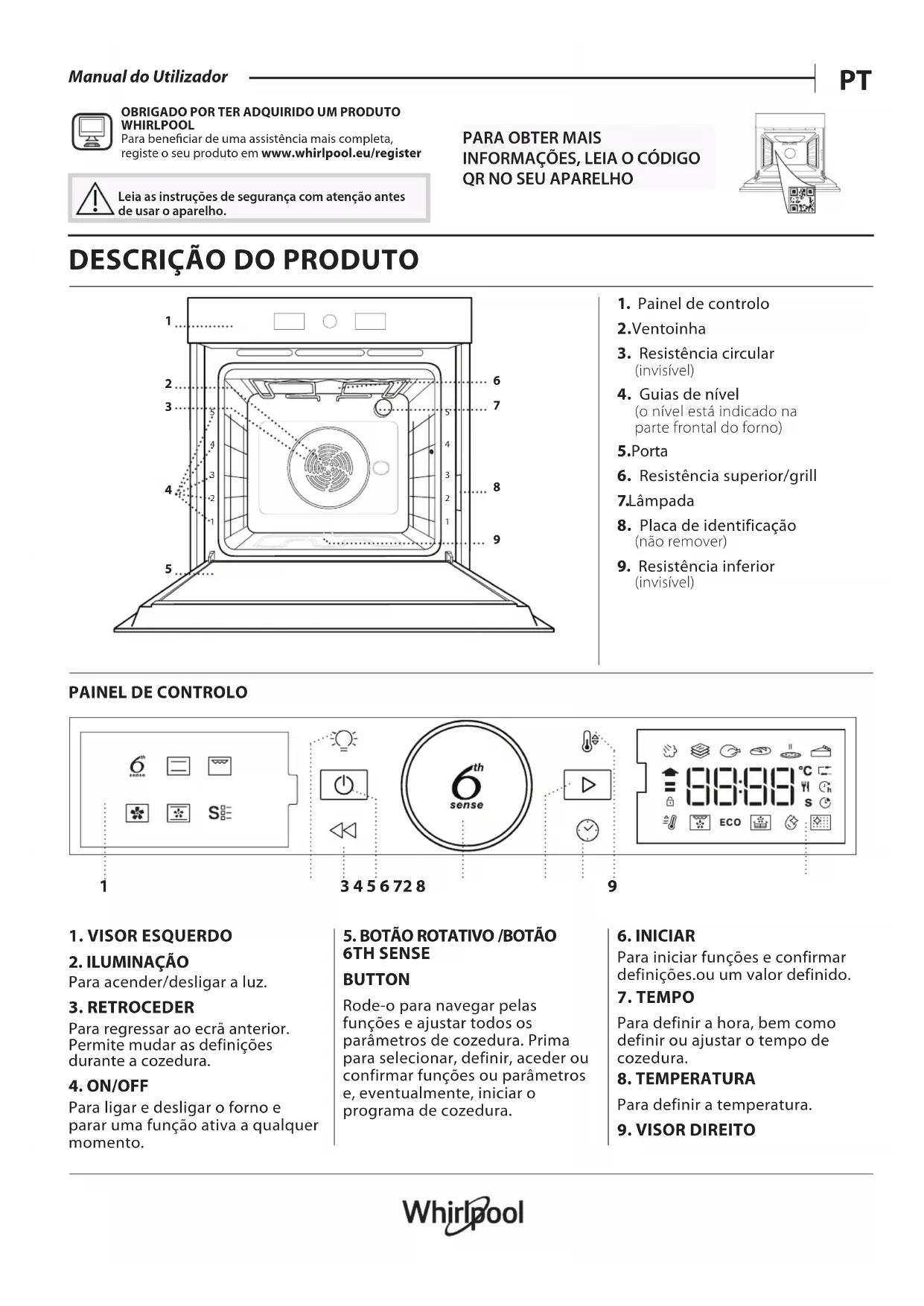 WHIRLPOOL Para beneciar de uma assistência mais completa, registe o seu produto em www.whirlpool.eu/register Leia as instruções de segurança com atenção antes de usar o aparelho.