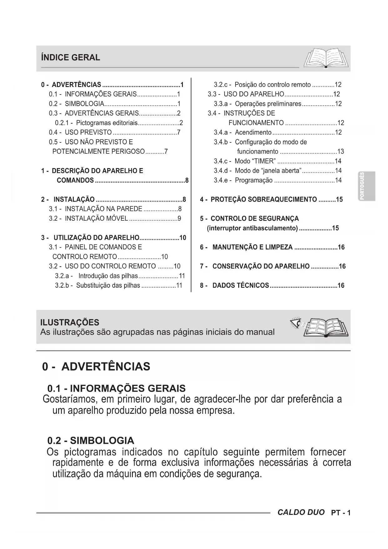 - - DADOS TÉCNICOS ILUSTRAÇÕES As ilustrações são agrupadas nas páginas iniciais do manualPT - 2PORTOGUÊS p. 16