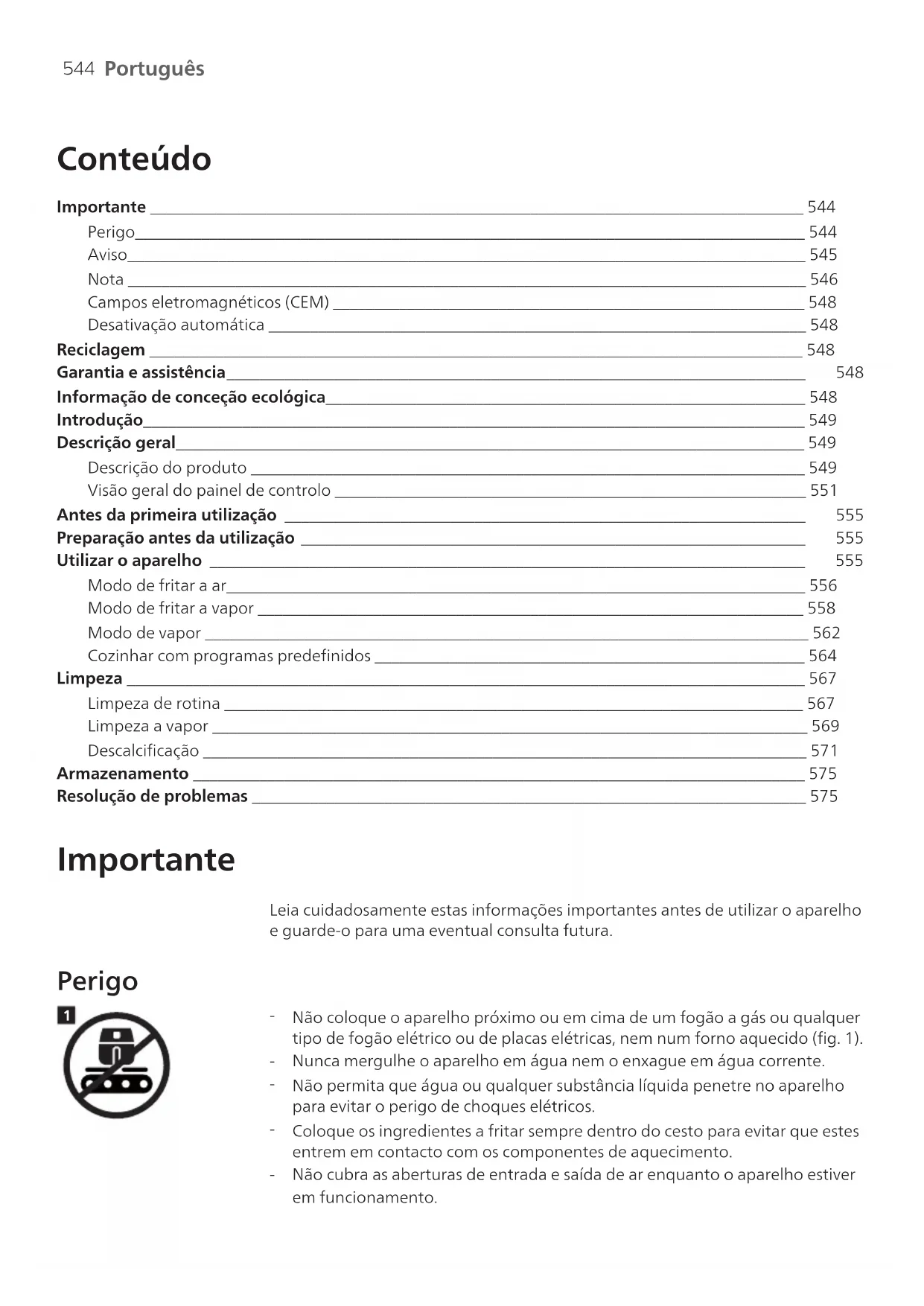 Ao cozinhar alimentos gordurosos, a Airfryer pode libertar fumo.547 Português