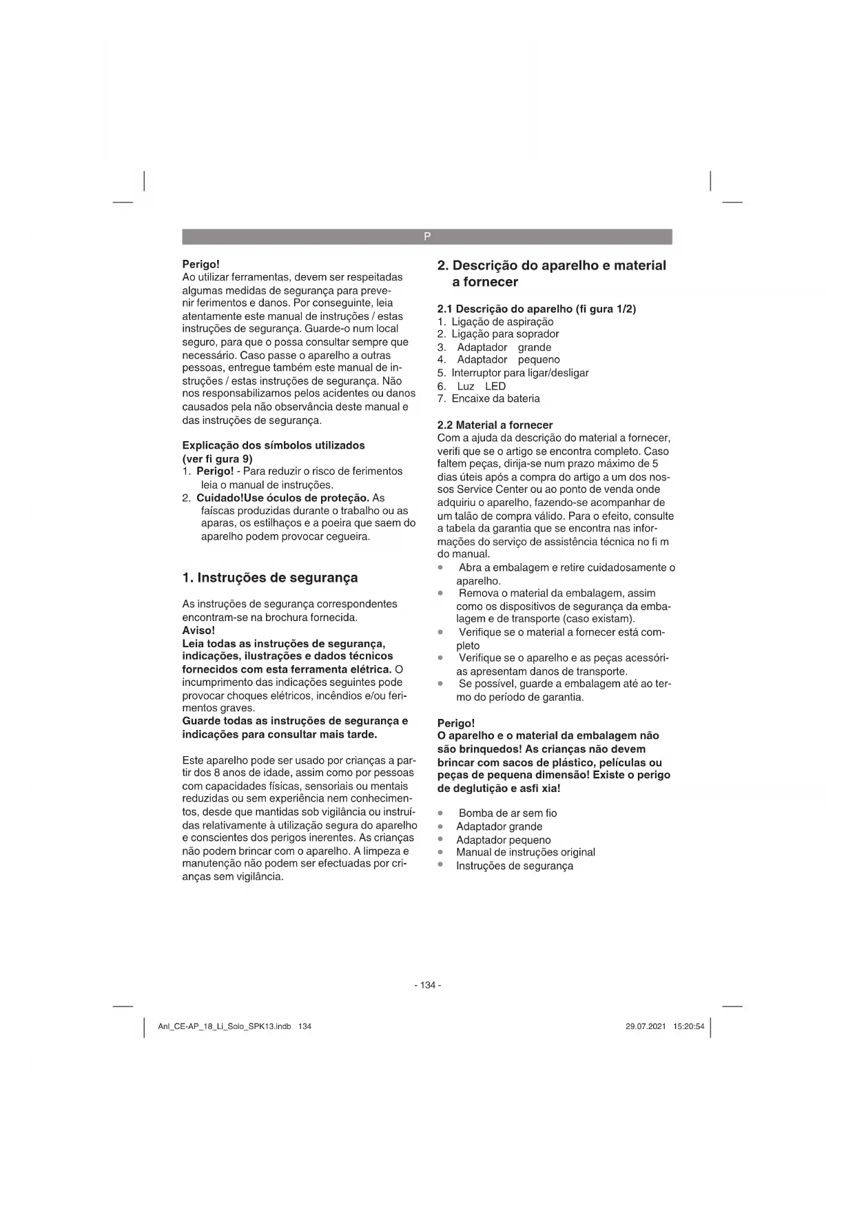 proteção auditiva adequada. Perigo! Durante o funcionamento, esta ferramenta elétri- ca produz um campo electromagnético. Em de- terminadas circunstâncias, este campo pode afectar implantes médicos activos ou passi- Anl_CE-AP_18_Li_Solo_SPK13.indb 135Anl_CE-AP_18_Li_Solo_SPK13.indb 135 29.07.2021 15:20:5429.07.2021 15:20:54P
