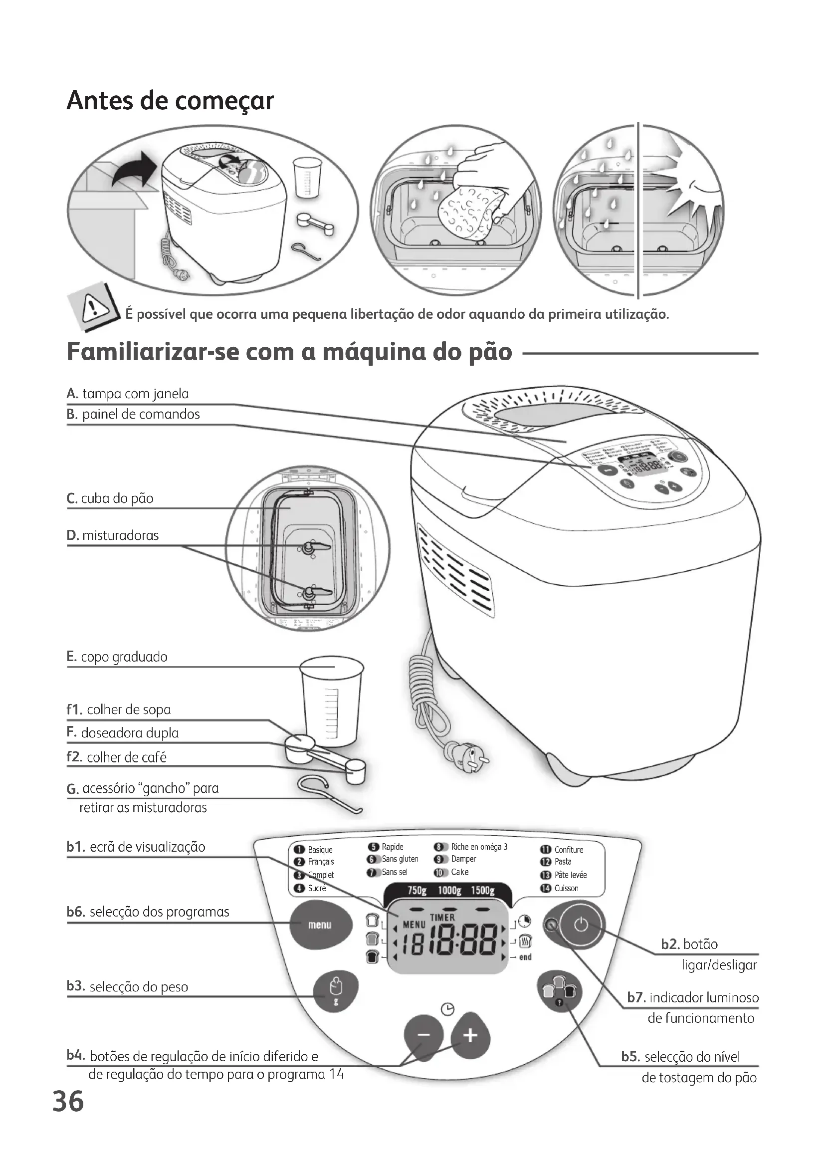 1. Leia com atenção o modo de utilização: não se faz pão nesta máquina