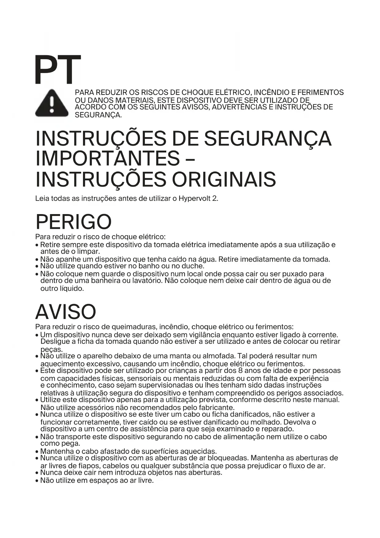 Leia todas as instruções antes de utilizar o Hypervolt 2. PERIGO Para reduzir o risco de choque elétrico: