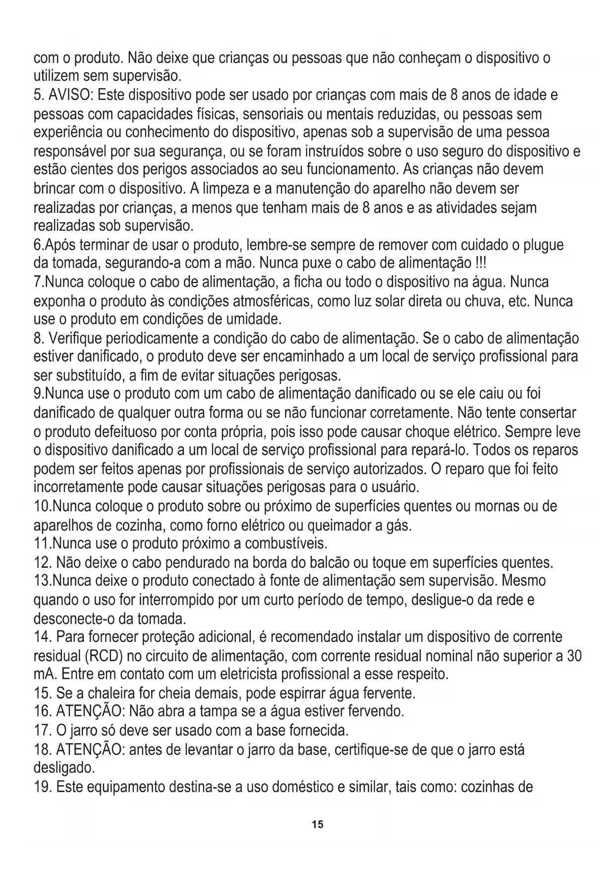 15. Se a chaleira for cheia demais, pode espirrar água fervente.16