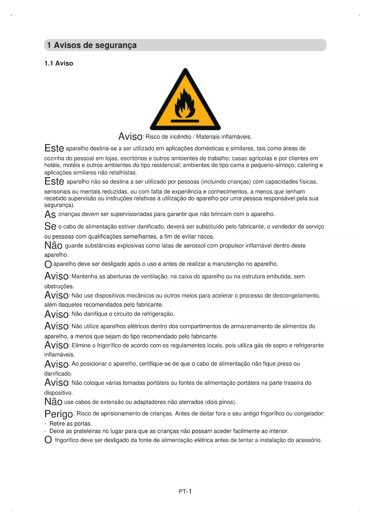Aviso: Elimine o frigorifico de acordo com os regulamentos locais, poised utilize gás de sopro e refrigerante inflamáveis.