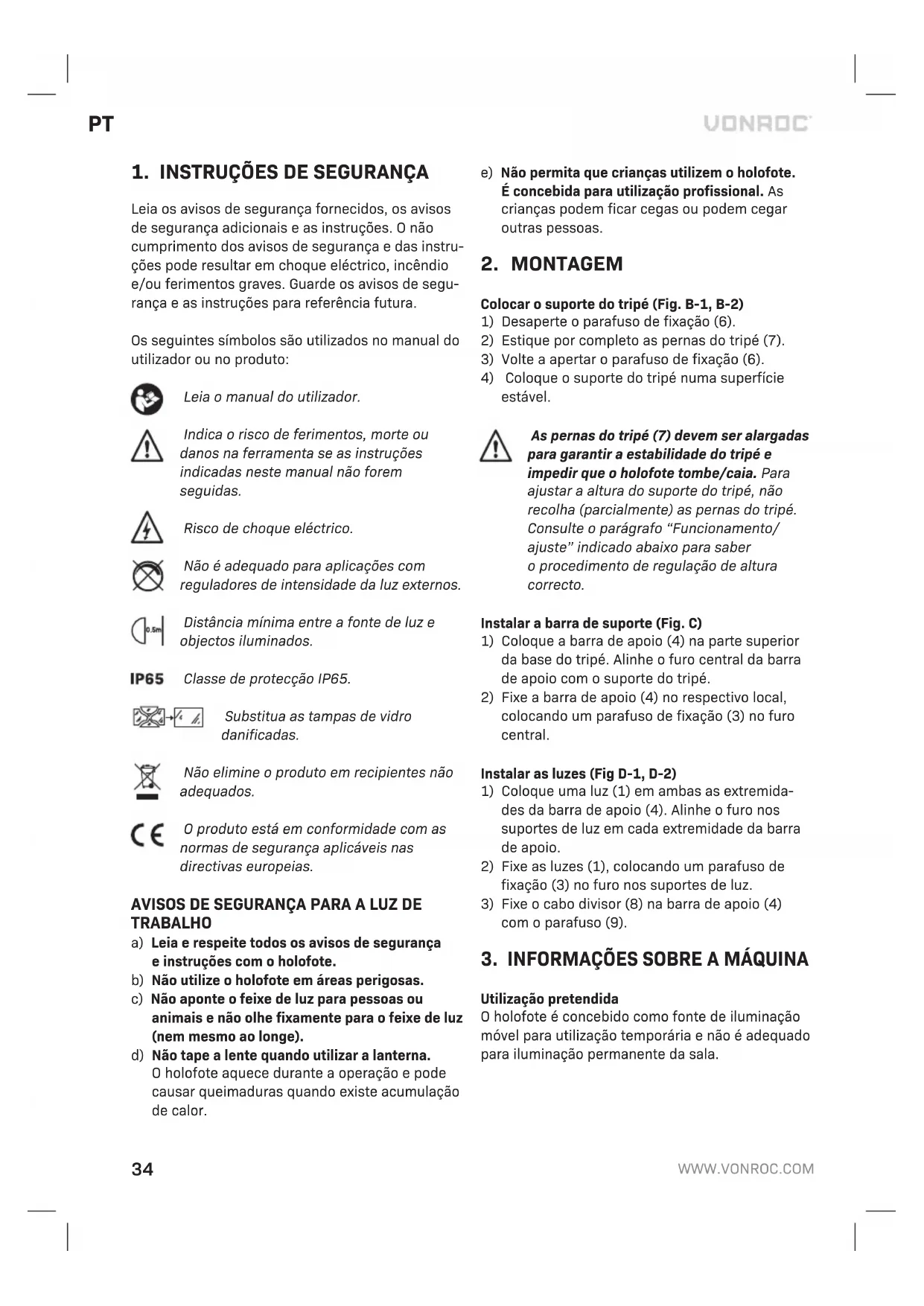 Utilização pretendida O holofote é concebido como fonte de iluminação móvel para utilização temporária e não é adequado para iluminação permanente da sala.PT