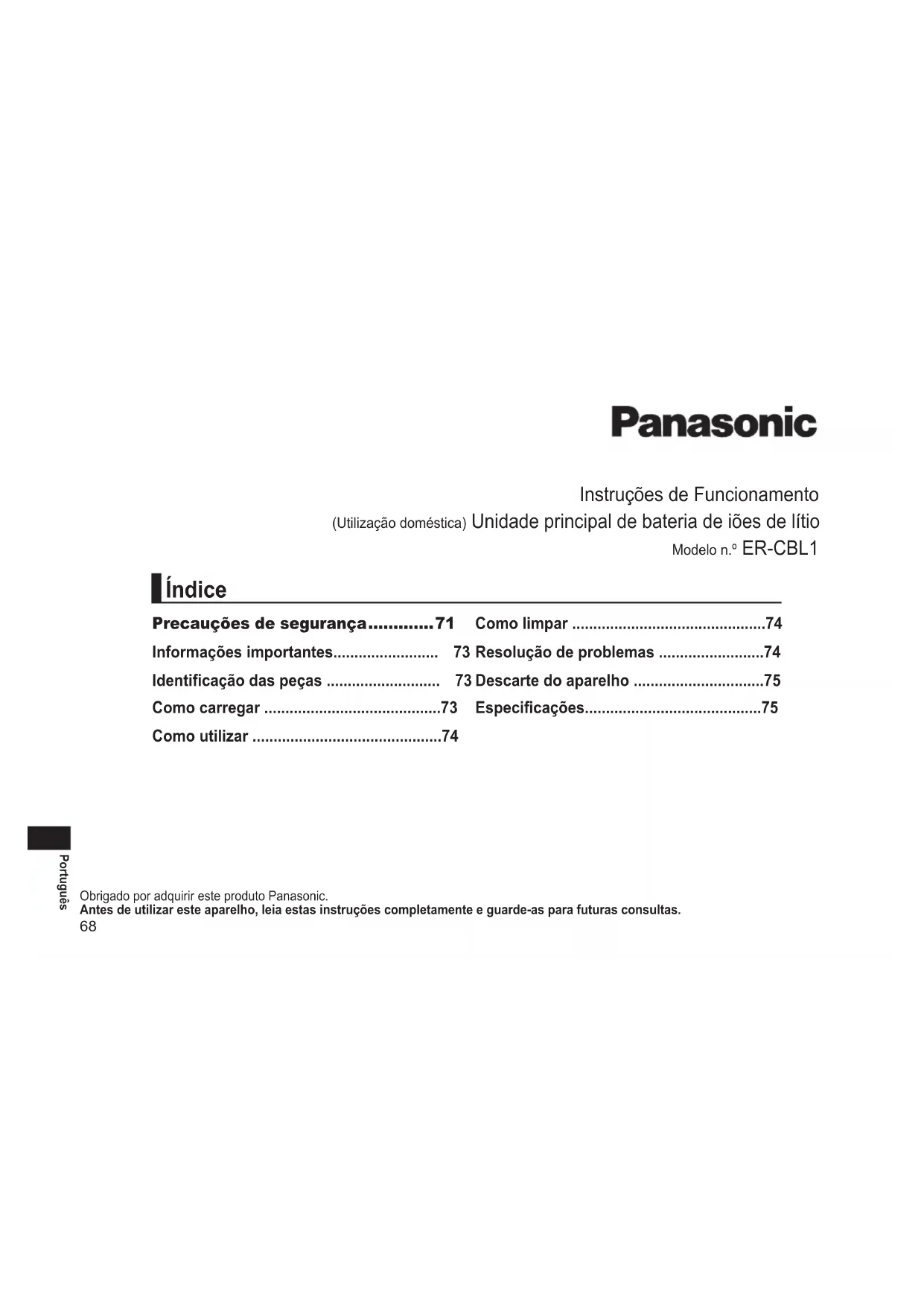Encontre gratuitamente o manual do aparelho ERCBL1 PANASONIC em formato PDF.