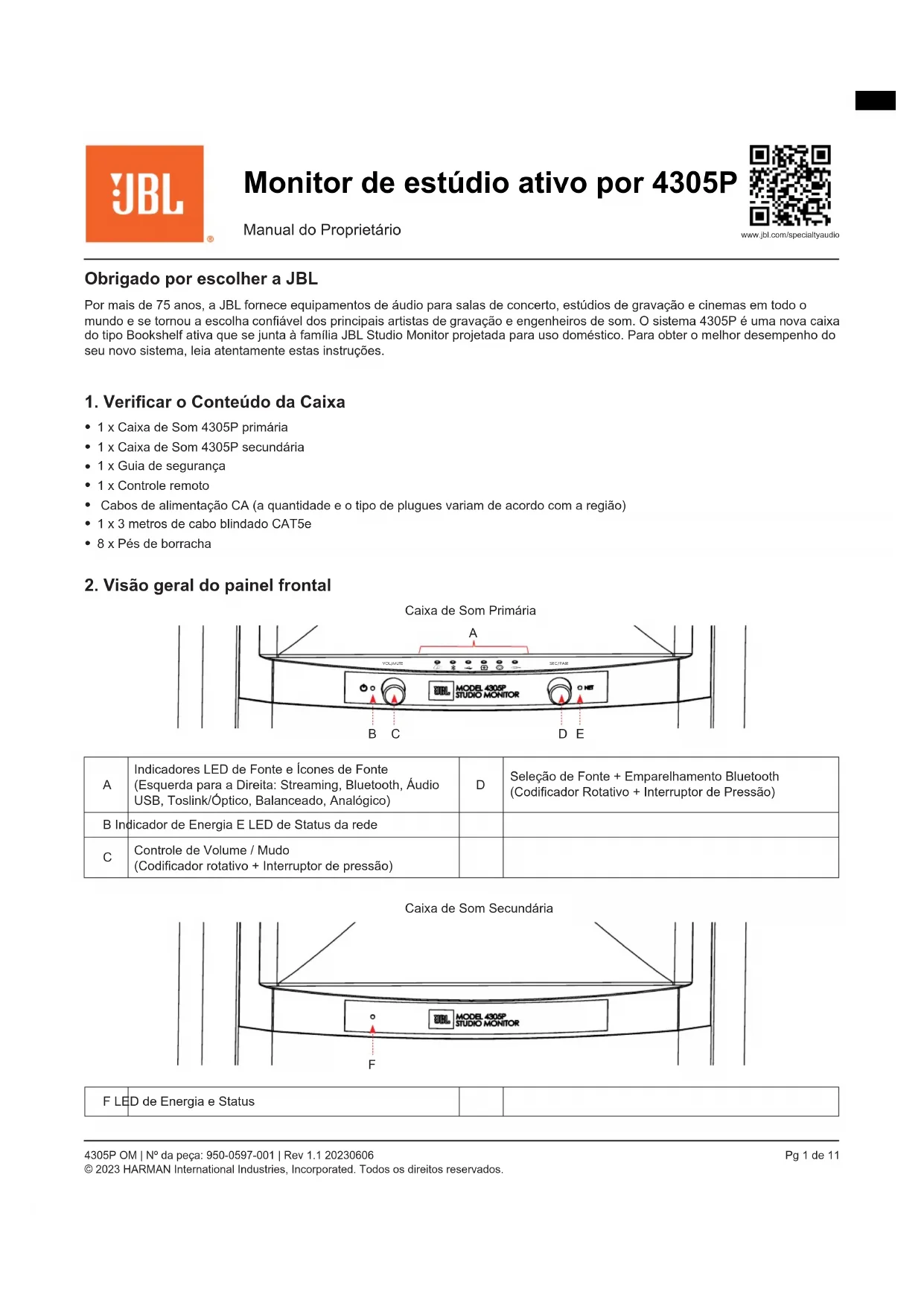 Encontre gratuitamente o manual do aparelho 4305P JBL em formato PDF.