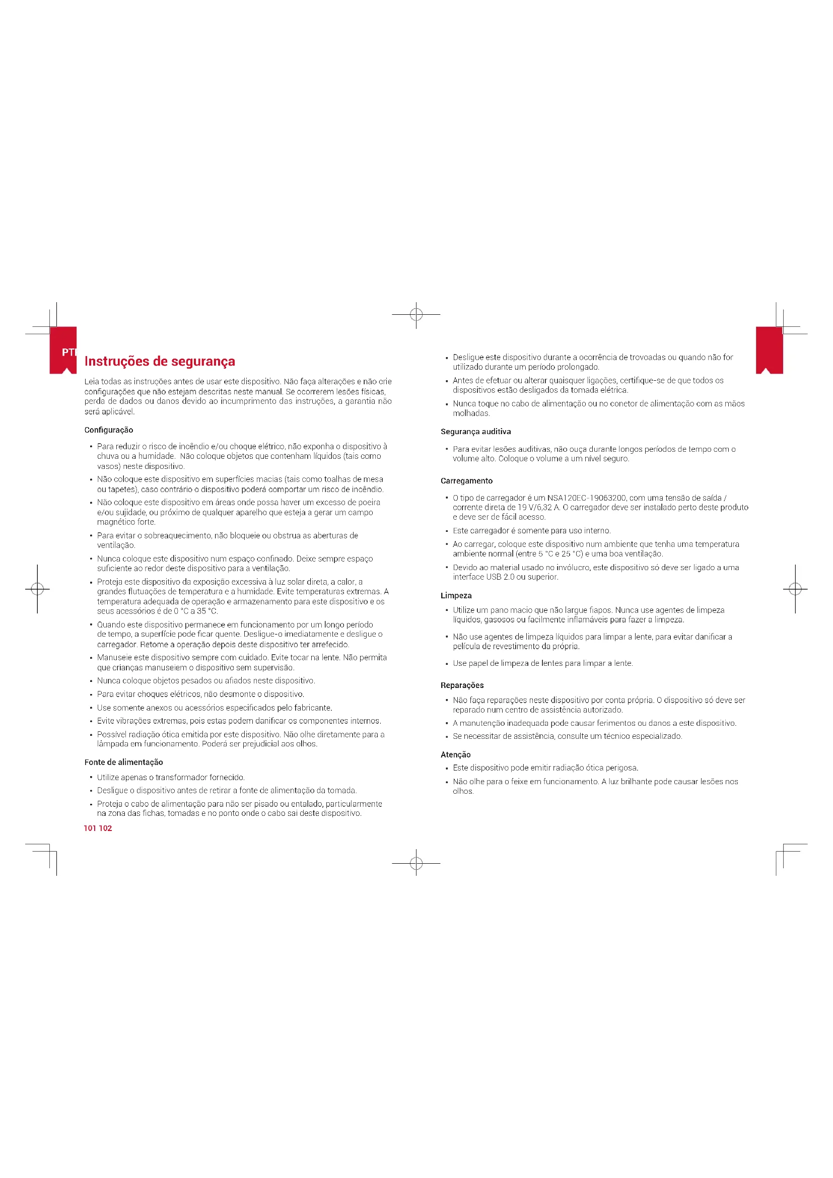 Manuseie este dispositivo sempre com cuidado. Evite tocar na lente. Não permita que crianças manuseiem o dispositivo sem supervisão.