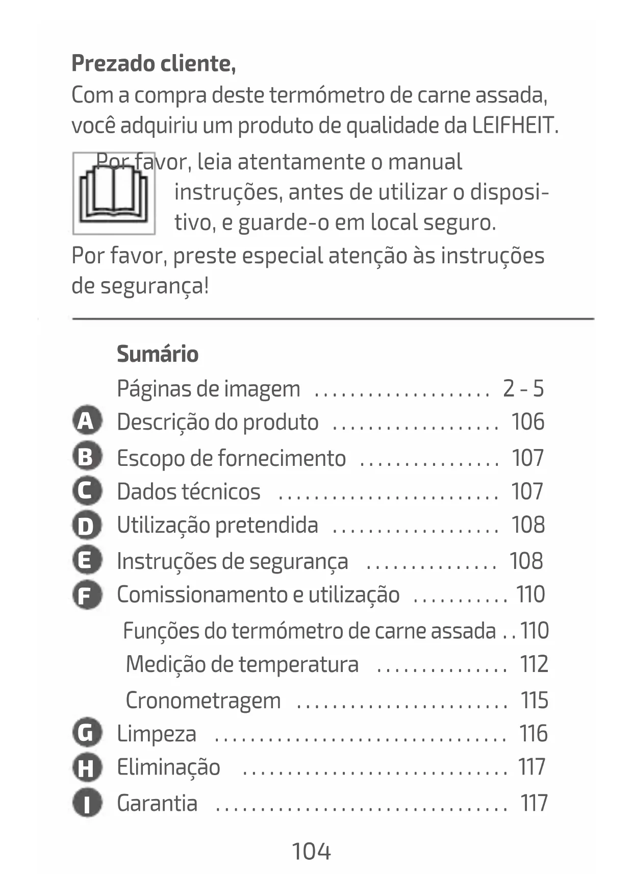 - Instruções de segurança p. 108