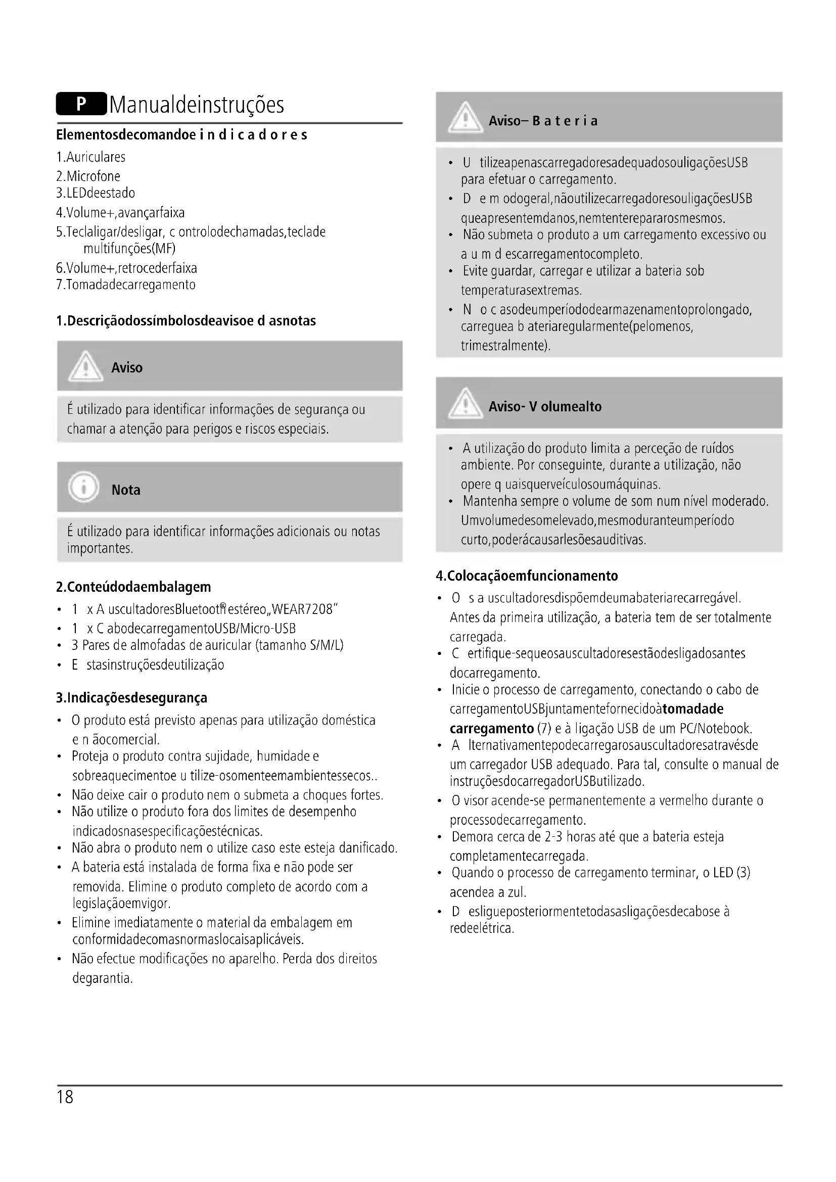 - Autilização do produto limita aperceção de ruídos ambiente. Porconseguinte, durante autilização, não operequaisquer veículos ou máquinas.