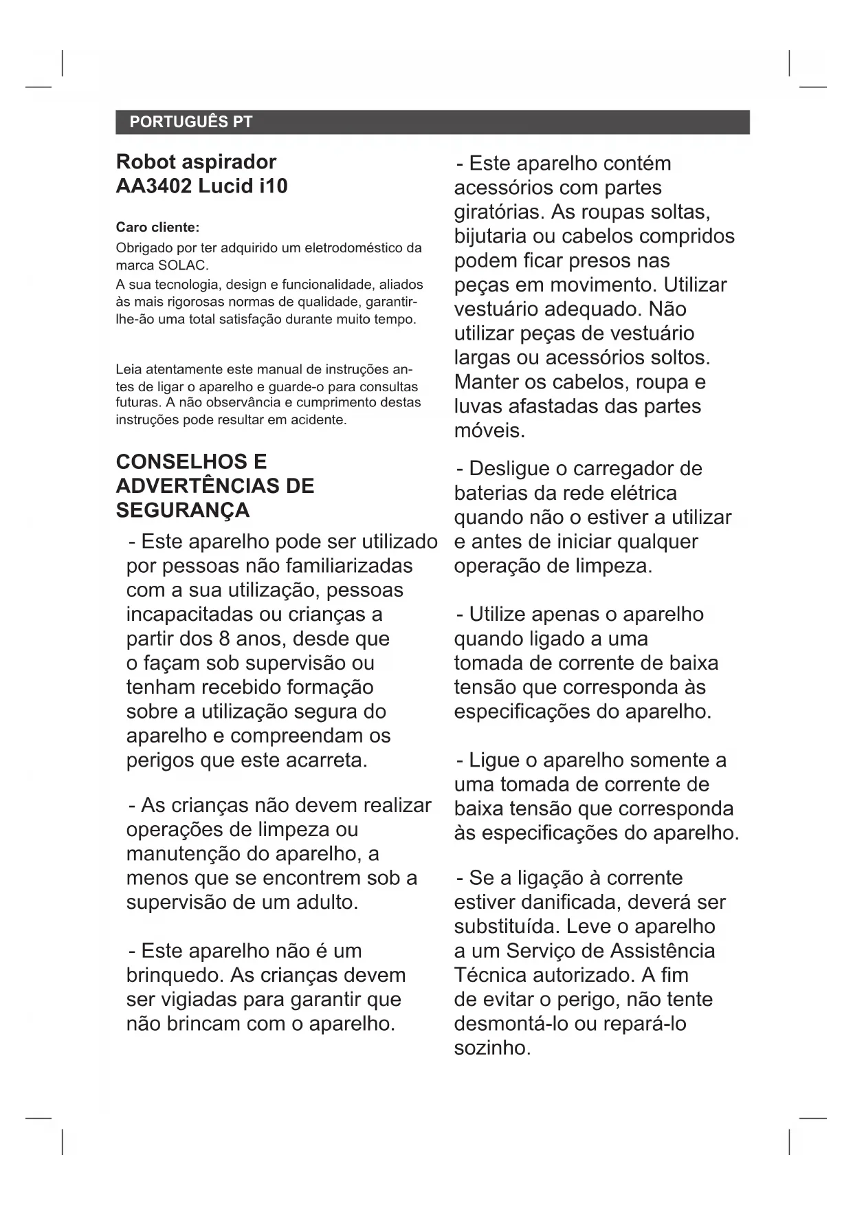 LUCID i10 - Aspirador SOLAC - Manual de utilização gratuito