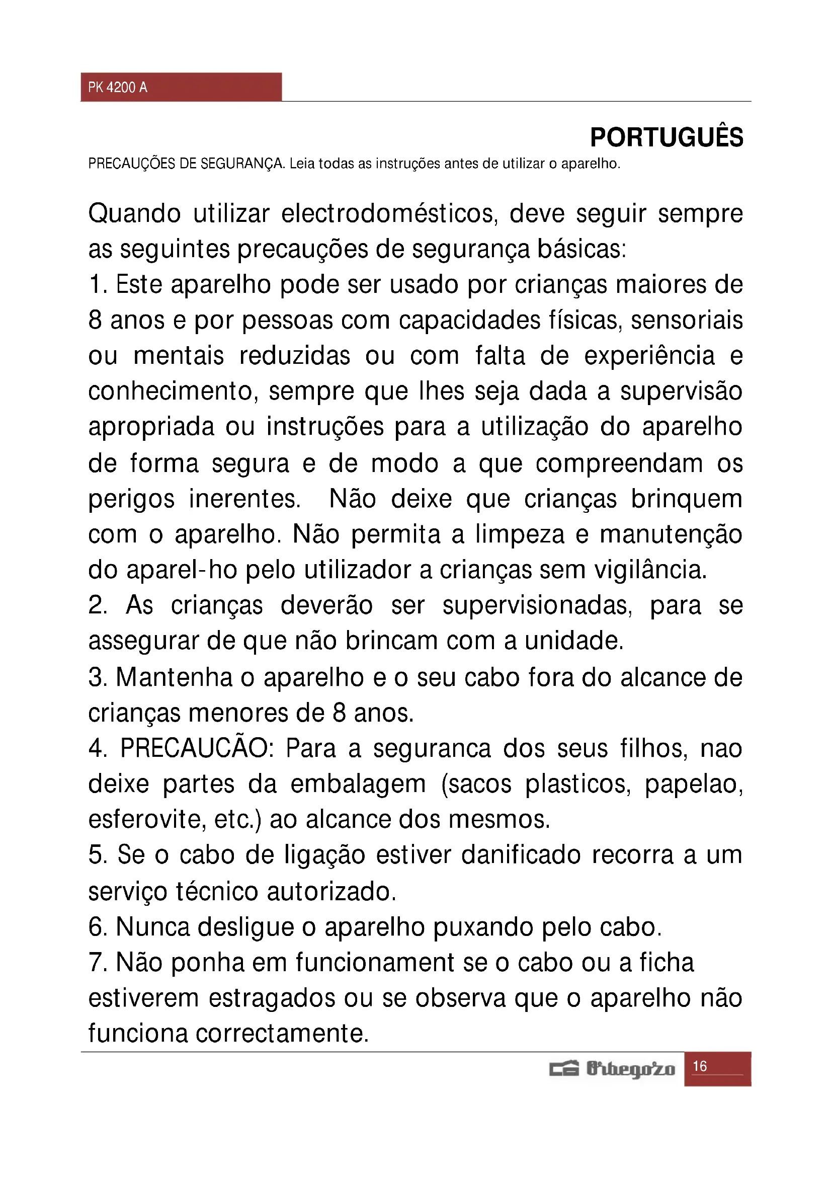 MANUAL DE UTILIZADOR PK 4200 Orbegozo
