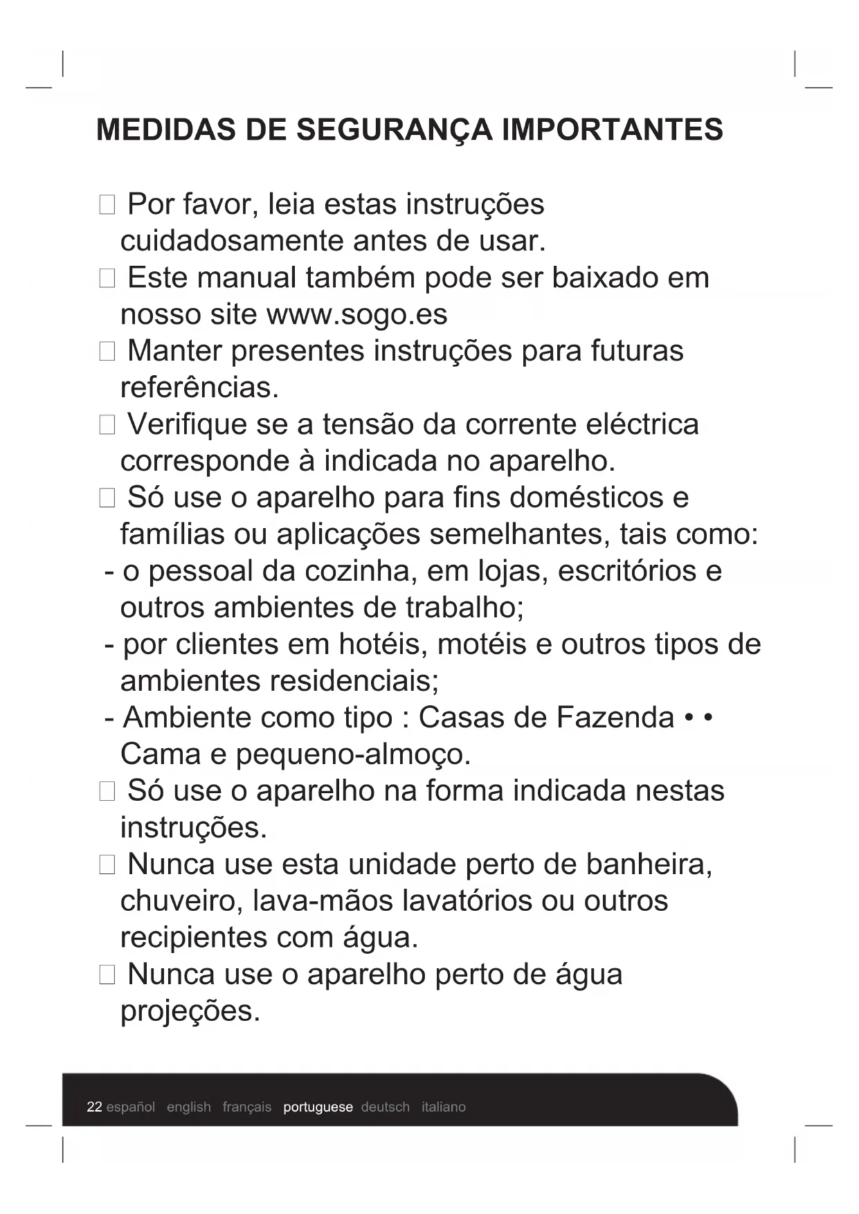 MANUAL DE UTILIZADOR SS16130 Sogo