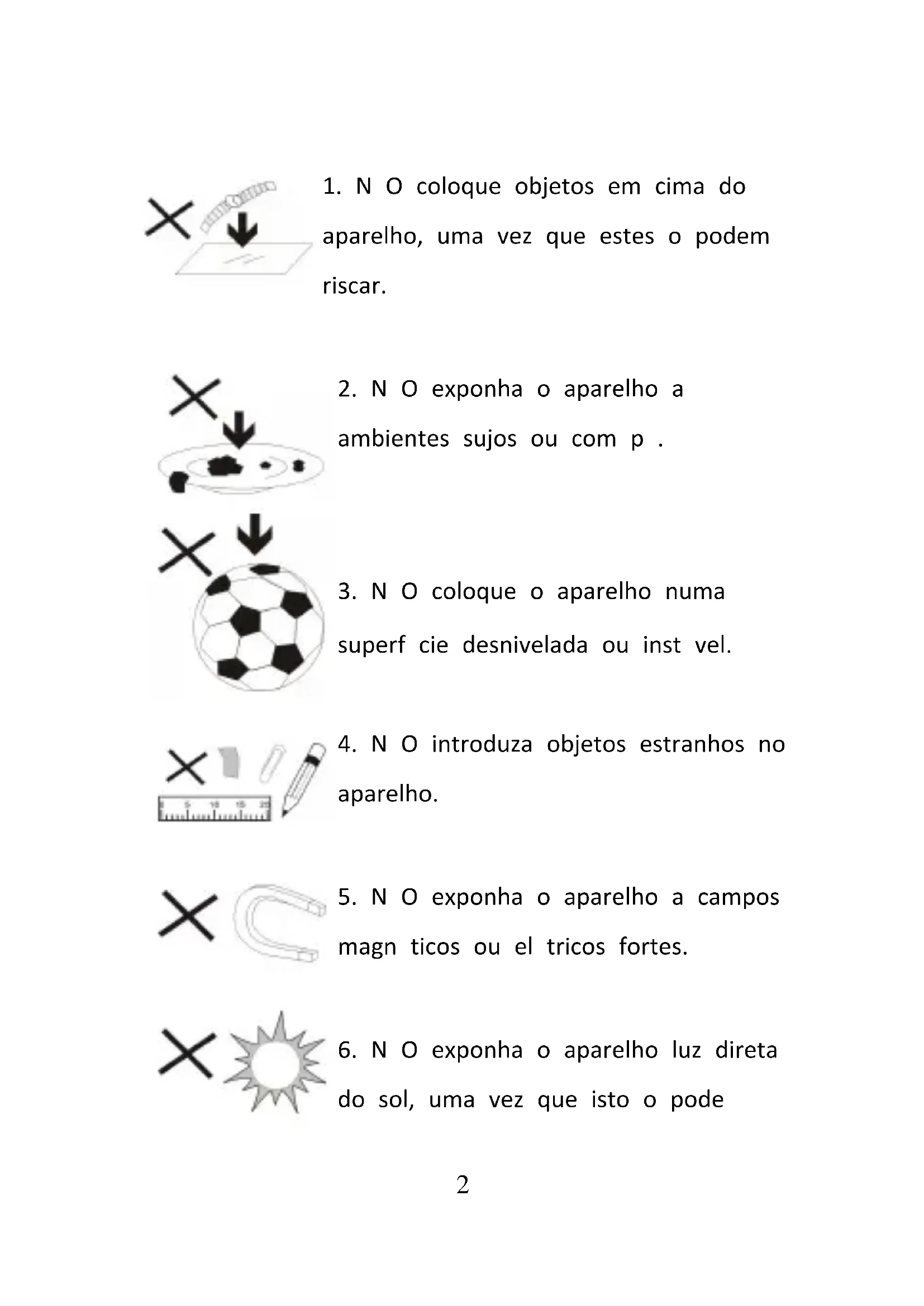 6. N O exponha o aparelho luz direta